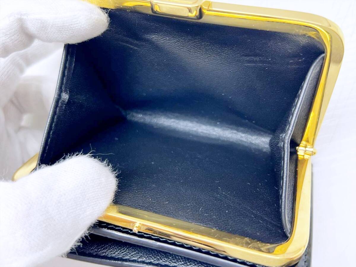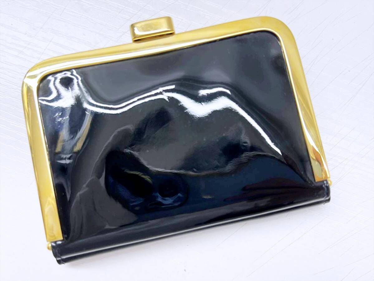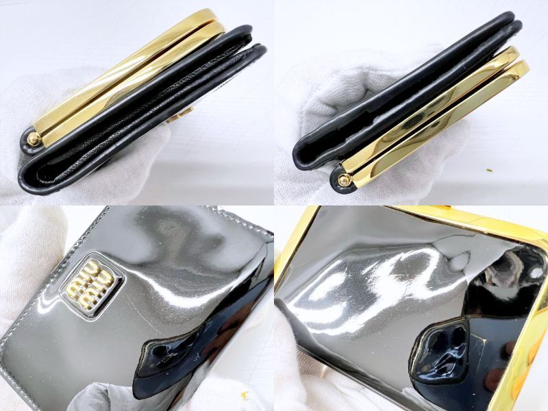 25年現行 MIUMIU ミュウミュウ ロゴ エナメル がま口 二つ折り財布 黒 ゴールド 5ME009