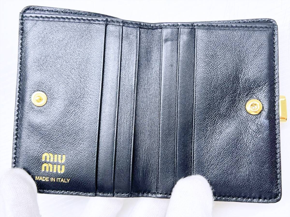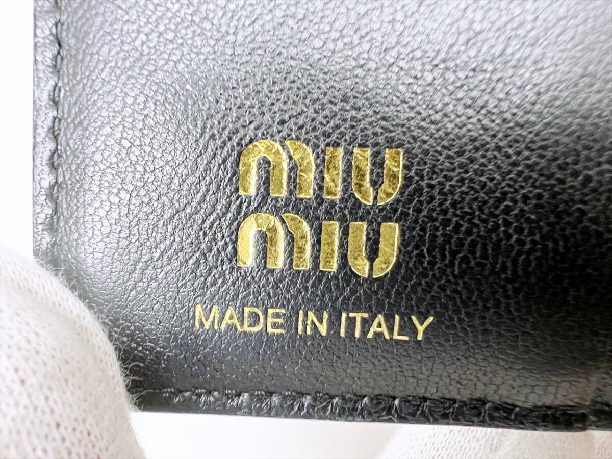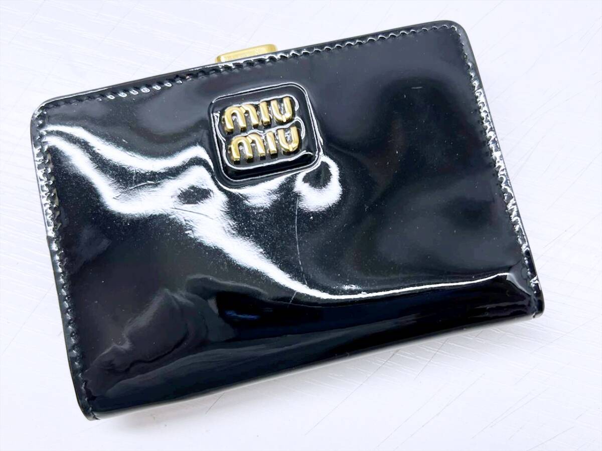 25年現行 MIUMIU ミュウミュウ ロゴ エナメル がま口 二つ折り財布 黒 ゴールド 5ME009