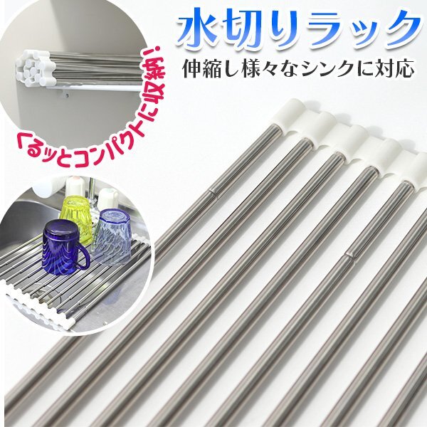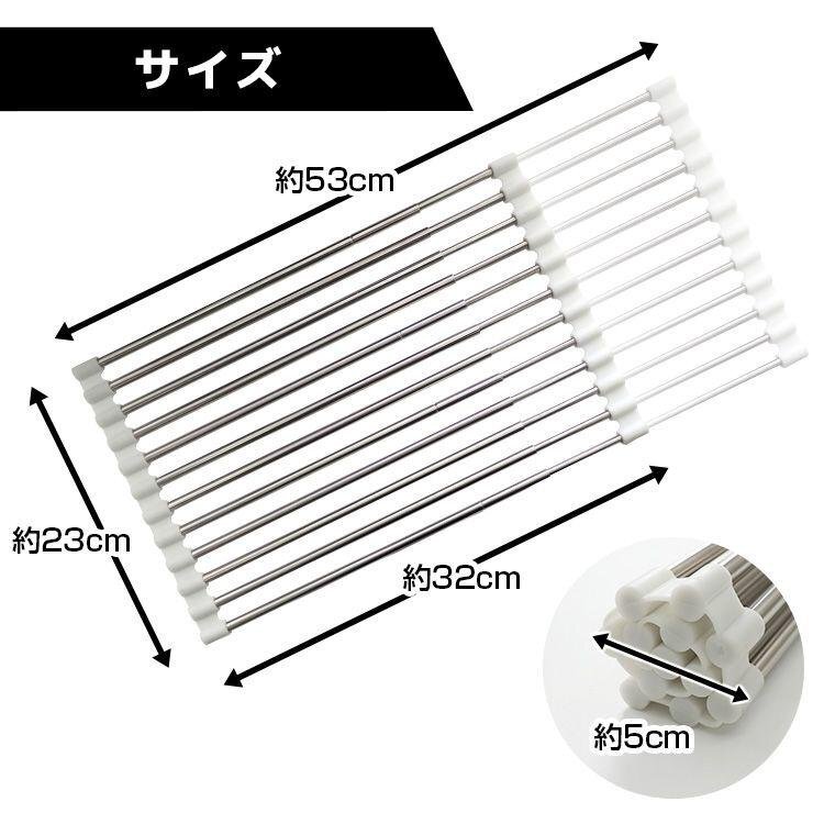 \ 水回りスッキリ!シンク上のスペースを有効活用 / 伸縮タイプの水切りラックです! 各ご家庭のシンクサイズに対応できます。 両端には水回りでも滑りにくいシリコン素材を採用! パイプ部分は、サビにくいステンレス製。 また、耐熱性に優れているので、調理中の鍋の一時置きや鍋敷きとしても使えます!! シリコン部分はハサミでカット可能なので、 シンク幅や使いたいサイズに合わせてカットして使用可能です。 くるくると丸めてコンパクトに! 少しの隙間があれば、手軽に簡単に収納できちゃいます♪ 汚れが気になったら、丸ごと水洗いOK! いつでもキレイな状態で使い続けられます☆ 【商品詳細】 サイズ:(約)横23cm×縦32~53cm(伸縮式) 耐荷重:(約)3kg 【注意事項】 ・当商品はゆうパケットにて配送になり、ポスト投函となります。 ・日付&時間指定不可(ご自宅のポストにお届け)。 ・商品は、モニターによって色合いが異なって見える場合があります。 ・仕様/デザインは改良のため予告なく変更することがあります。 |