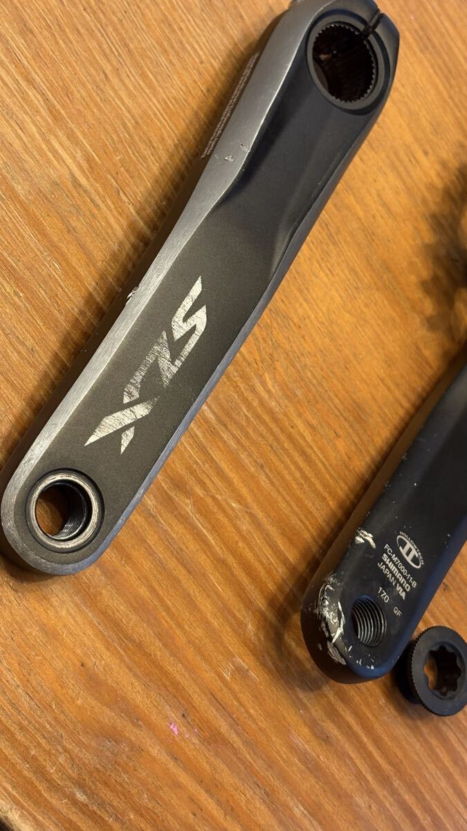 譲り受けたMTBに付いていたクランクで、すこし乗っていつも使う長さに変えたので外して保管していました。前オーナーも他の自転車をメインで使っていてほとんど乗る機会が少なかったそうですが、キズありますので写真でご確認ください。