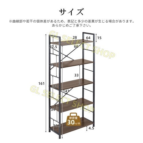 • 5.【安心感たっぷりしたデザイン】各段最大30kgの耐荷重で、安全に整理整頓が可能。X字型の防揺クロス補強金具で安定性向上、効果的に揺れを抑制できる。両側支柱の密な設計は追加の支持と堅牢な構造を提供。直径2cmの幅のスチールフレームが全体の安定性を確保し、安心してご使用いただける。