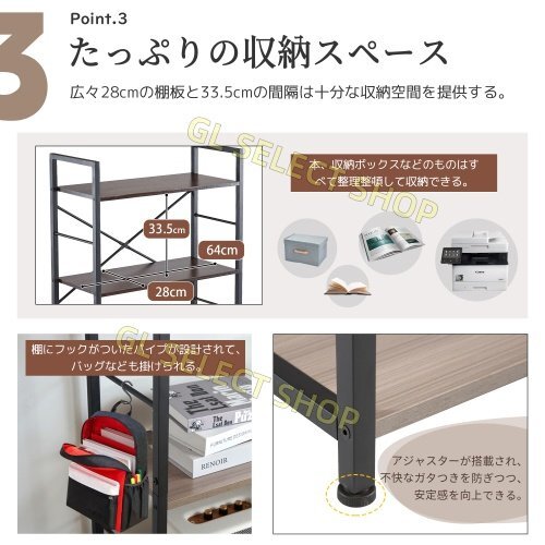 • 6.【細かいこだわり】棚にフックがついたパイプが設計されて、バッグなども掛けられる。アジャスターが搭載され、不快なガタつきを防ぎつつ、安定感を向上できる。
