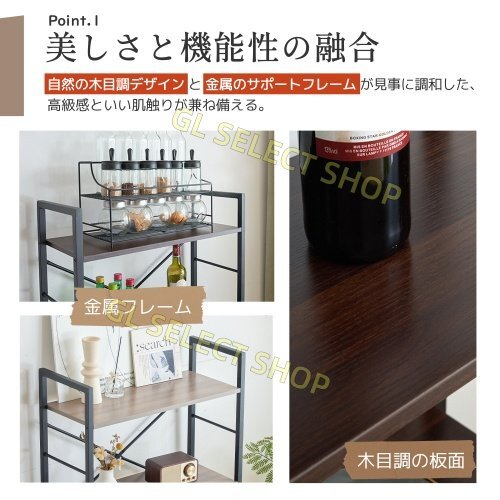 ブラウン 収納 ユニットシェルフ オープンラック スチールラック 木製 スリム キッチン 本棚 食器棚 レンジ台 リビング キッチン