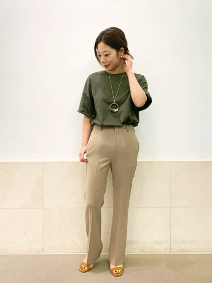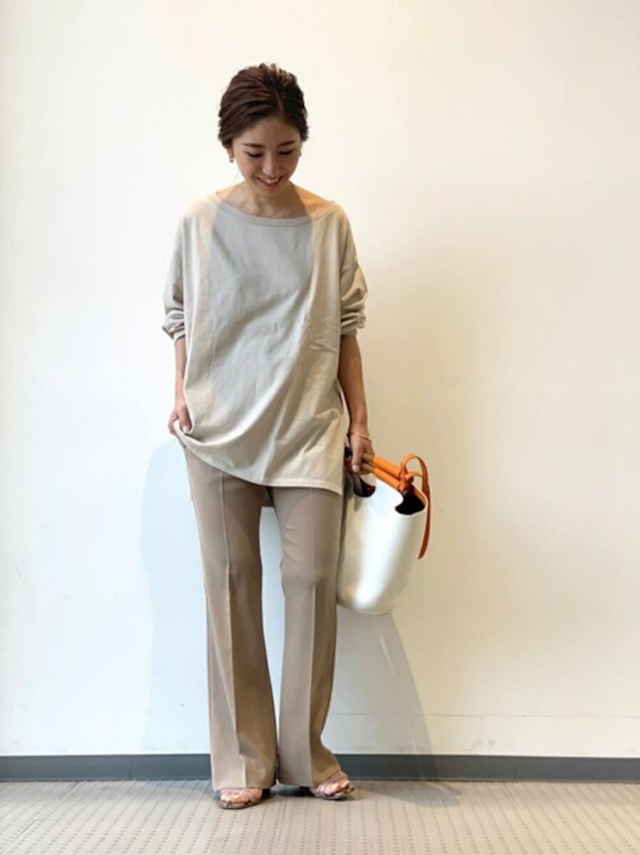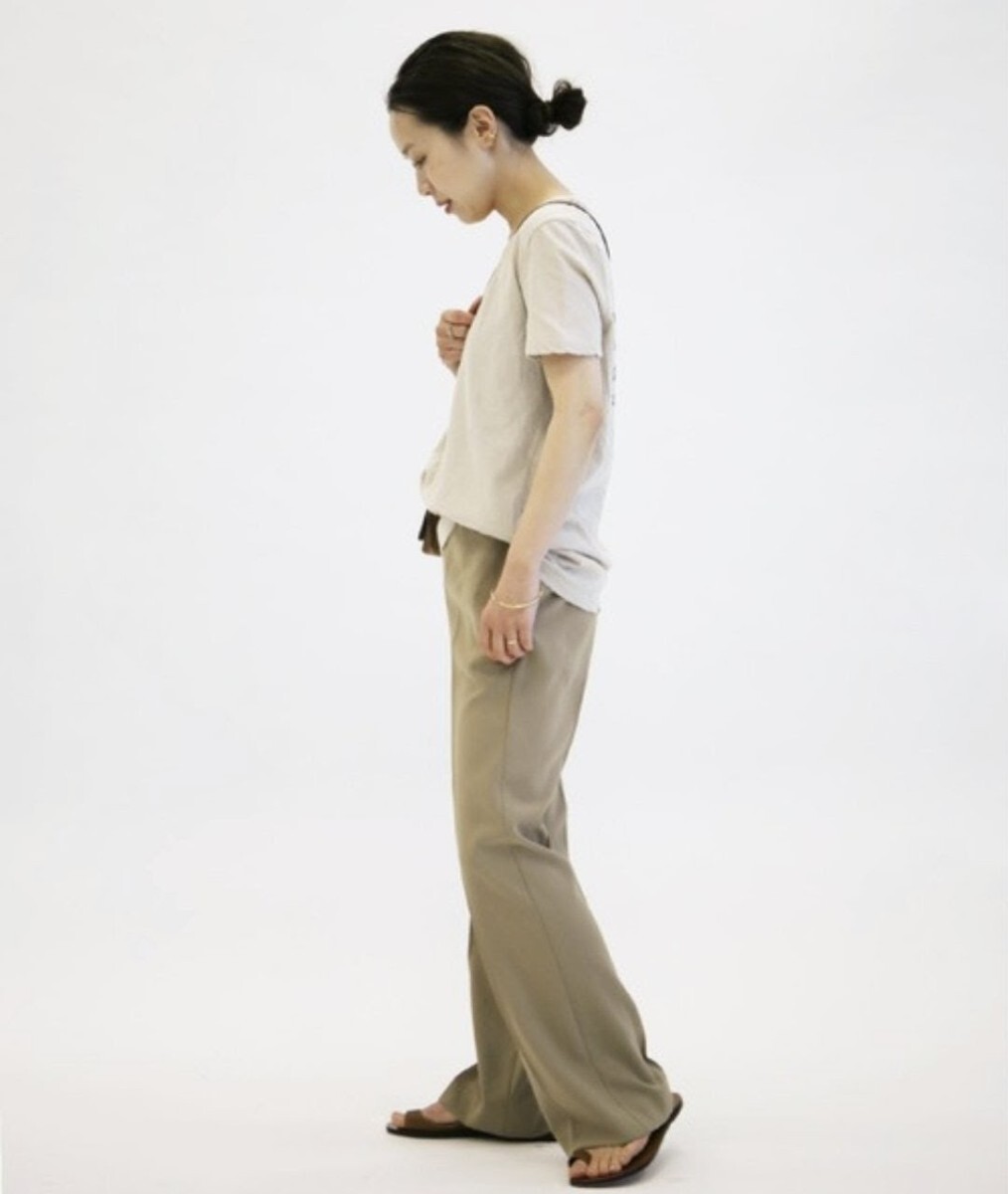 テイスト選ばず合わせられるフレアパンツ。さらりと肌離れのよいドライタッチな素材を使用、伸縮性のあるポリウレタンをMIXさせて動きやすさもプラス。さりげなくひざを絞ったシルエットなのでひざ下が長く見え、美脚効果も期待できます。ラフなカットソーやニットとも相性がよく、スタイリングをバランスよくまとめてくれる優秀パンツです!