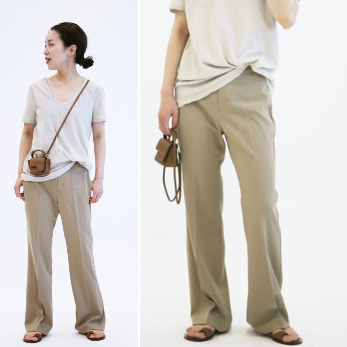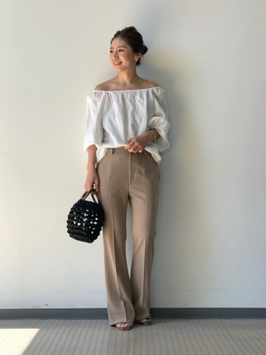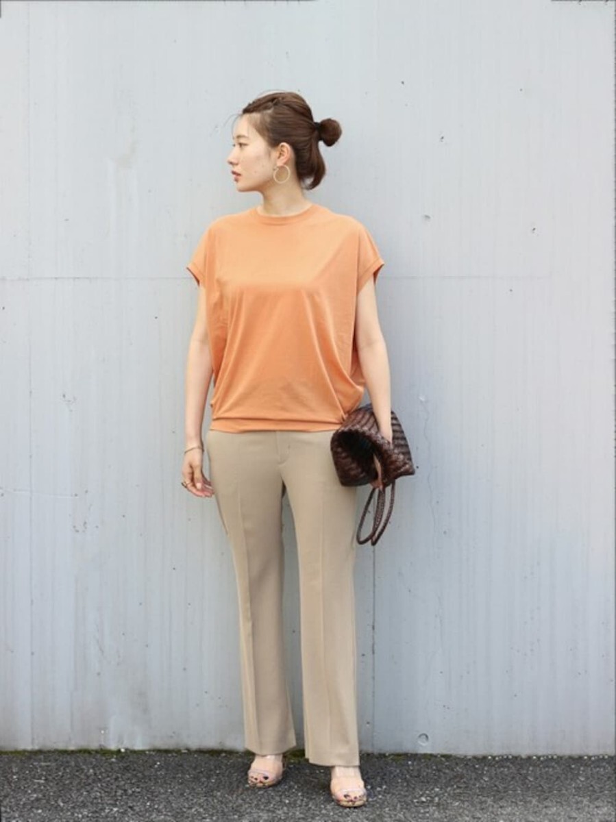 テイスト選ばず合わせられるフレアパンツ。さらりと肌離れのよいドライタッチな素材を使用、伸縮性のあるポリウレタンをMIXさせて動きやすさもプラス。さりげなくひざを絞ったシルエットなのでひざ下が長く見え、美脚効果も期待できます。ラフなカットソーやニットとも相性がよく、スタイリングをバランスよくまとめてくれる優秀パンツです!