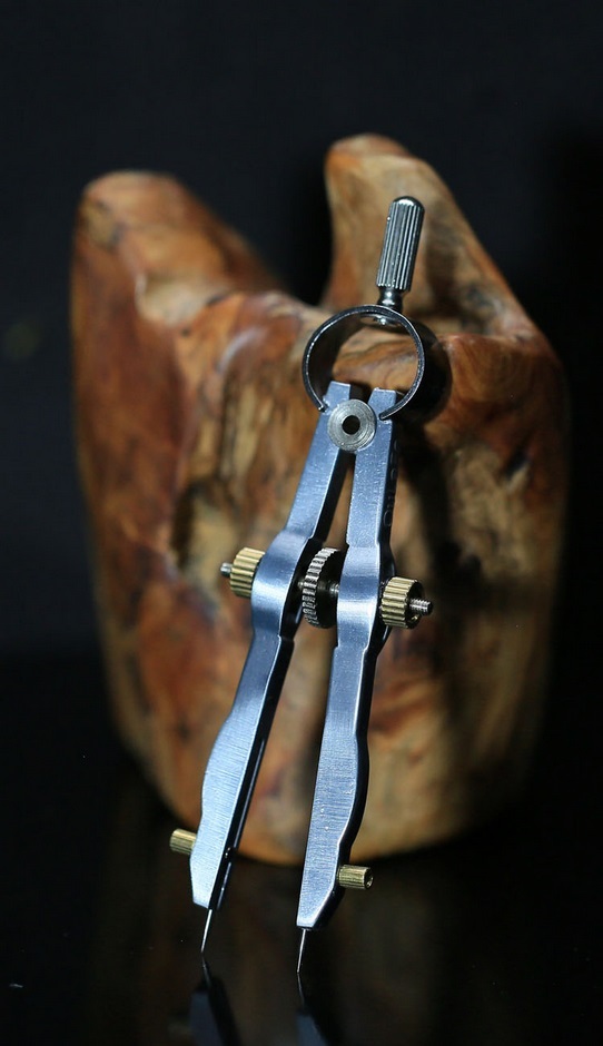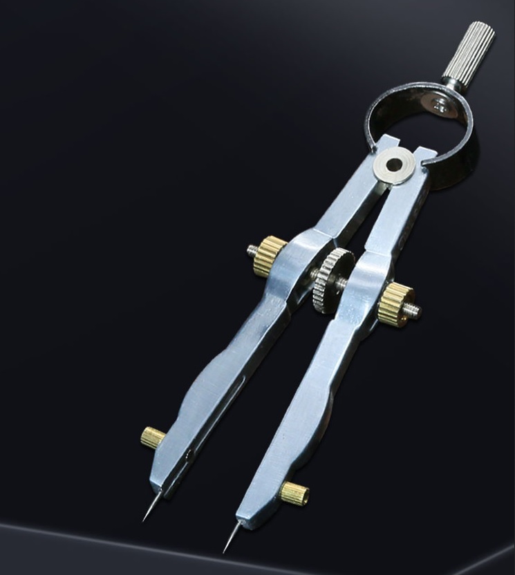 ・2本の針状の脚をもつ分割器。中央のネジを回して針の幅を調整します。