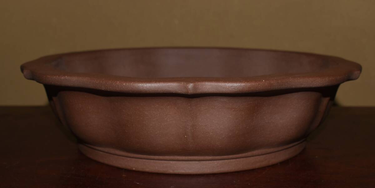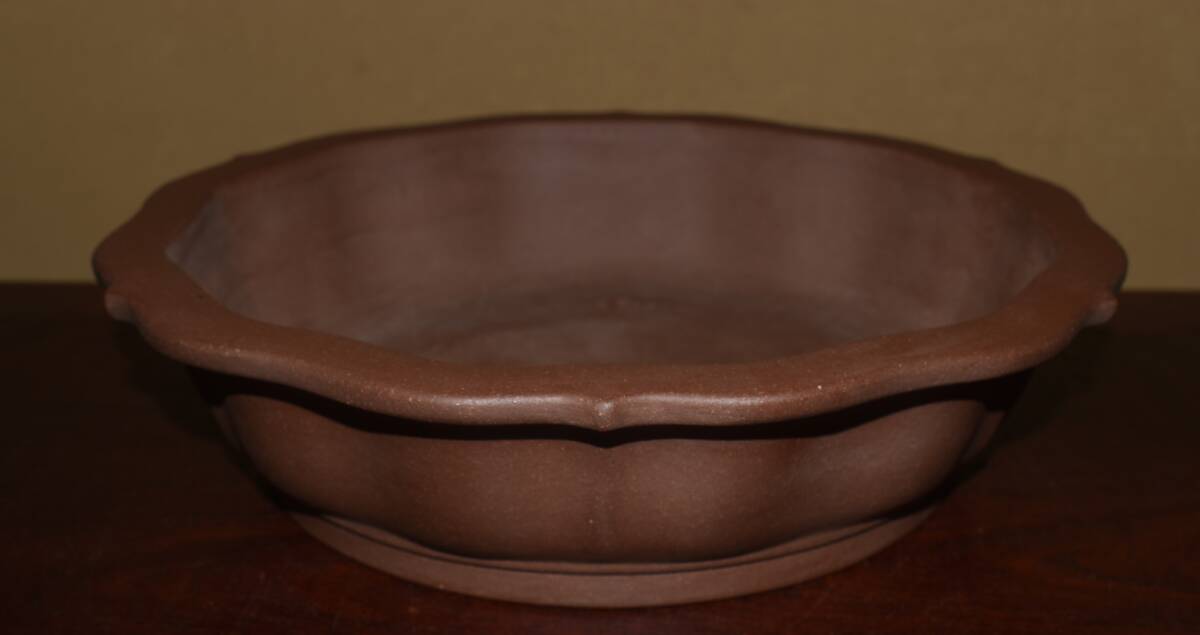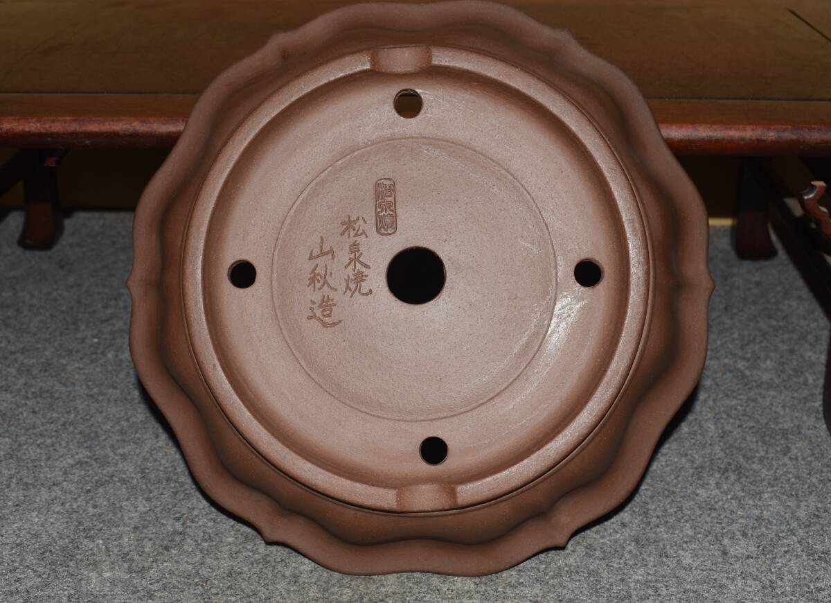 サイズ 32,0×8,3cm 人気和鉢作家<松泉焼、山秋造・紫泥・手造り、釘彫落款★時代乗り満点★使い頃サイズ>外縁古鏡型輪花鉢のご紹介です・・皐月、松柏に最適な逸品。使い頃サイズ・・ 紫泥の泥味が良く、実用にも優れた素晴らしい品です・傷はありません。・・ 大変古い物ですので縁・足等にホツ・スジ・カケ等がある場合がございます。 状態を良くご確認の上、ご入札宜しくお願い致します。。画像を良くご確認の上、御入札宜しくお願い致します。完品をお求めの方は入札をお控えお願い致します。*注意事項* オークション終了後48時間以内に必ずご連絡をお願いします。ご連絡がない時は、ご購入意思がないと判断し、落札者さま都合のキャンセルとさせて頂きます。再三のご連絡を差し上げても、ご連絡がない場合は、時点繰り上げとさせて頂きます。マイナス評価の多い方や新規の方を削除する場合がありますので、ご了承下さい。また、入札価格が低価格の場合は取消終了とさせて頂く場合がございますので、ご了承願います。古い物等ございますので小さな傷等は、見落とす場合がございますので、写真を良くご覧になり納得の上ご入札して下さい。また、完品をお求めの方は入札をお控えお願い致します。キズ・破損等のご連絡は商品到着5日以内にご連絡ください。それ以降は対応致しかねますので到着後、商品を必ずご確認ください。輸送中の事故(鉢が割れる、枝が折れる等)につきましては商品到着時に確認し取引ナビまたは、お電話にてご連絡下さい。 基本土日の発送は行っておりません。ご了承ください。