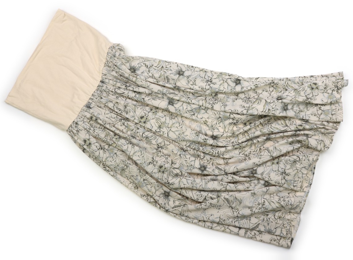 実際のサイズ表記は2ですが、実寸ではウエスト約33cm(×2平置き実寸)、ウエスト部分を除いた総丈約81cm。ウエストは総ゴムで、薄手のポリエステル素材です。お腹に黄色いシミが複数ありますが、普段使いにいかがでしょうか。