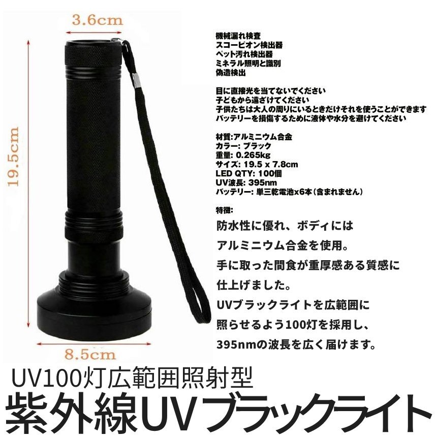 送料無料!!! 送料及び下記のご案内をご確認の上、ご入札お願い致します。 離島地域を除く九州、四国、本州まで送料無料。 ※北海道は+1000円、離島地域及び沖縄県は+3000円にて承ります。(発送前に加算) ※画像内にカラー及びサイズ等の選択が可能と記載がある場合がございますが、 お届けする物はタイトルまたは商品説明文に記載の物です。 ★※注文後のカラー変更や異なるカラー・サイズ指定等は一切承っておりません。 ※★※仕様(ロゴデザイン/ロゴ有無等も含む)は予告なく変更する場合があります。 ※多少の汚れや小傷がある場合がございますがご了承ください。 梱包は簡易包装ですので、箱の角落ち等はご了承願います。 【商品説明】 \ シッカリ照らす!!100灯UV懐中電灯 / ハンディUV懐中電灯! 様々なシーンにマッチする便利な作業用UVライトです。 100灯あるUVが広範囲に照射します。 電池式で簡単操作♪ ※電池別売 IPX4デザインを采用! 日常の耐久性と表面滑り防止性が有難い♪ ペットの尿発見や 紙幣、偽造品の識別時に、 宝石類の亀裂を検査 服や化粧品に蛍光物質等使い方様々♪ ============== 【商品仕様】 素材:アルミニウム合金 サイズ:全長195×ヘッド外径85×グリップ外径36mm 重量:265g 本体カラー:ブラック ※バッテリーは別売りです ※日本語説明書は付属しておりません ※輸入品ですので多少の臭いやスレ傷、汚れはご了承ください ※サイズは実寸ですが若干前後する場合がございます ※お子様の手の届かない場所で保管してください ============== ※詳細は画像にてご確認ください ![]() ![]() ![]() ![]() ![]() ![]() ![]() |