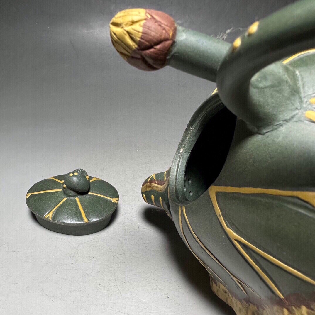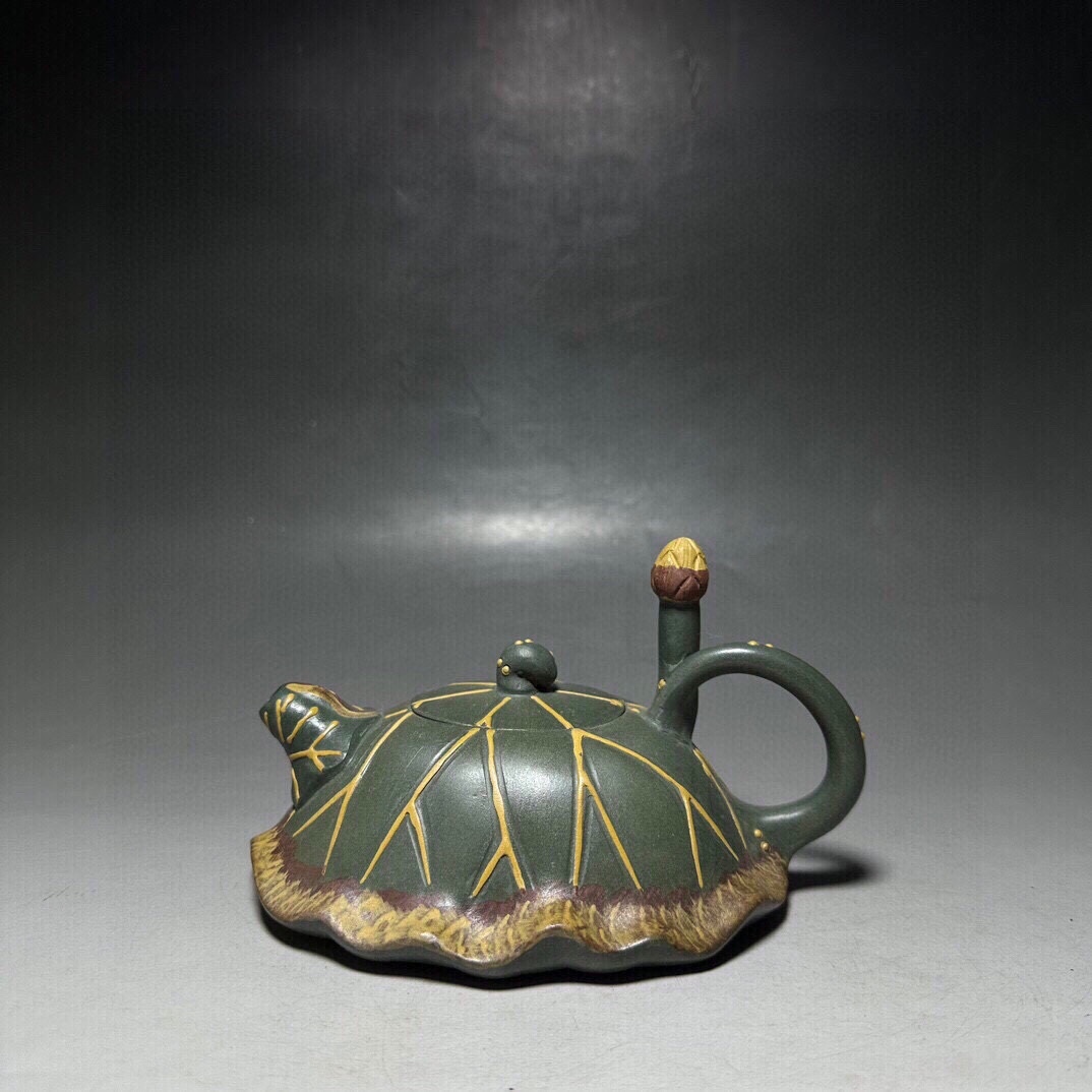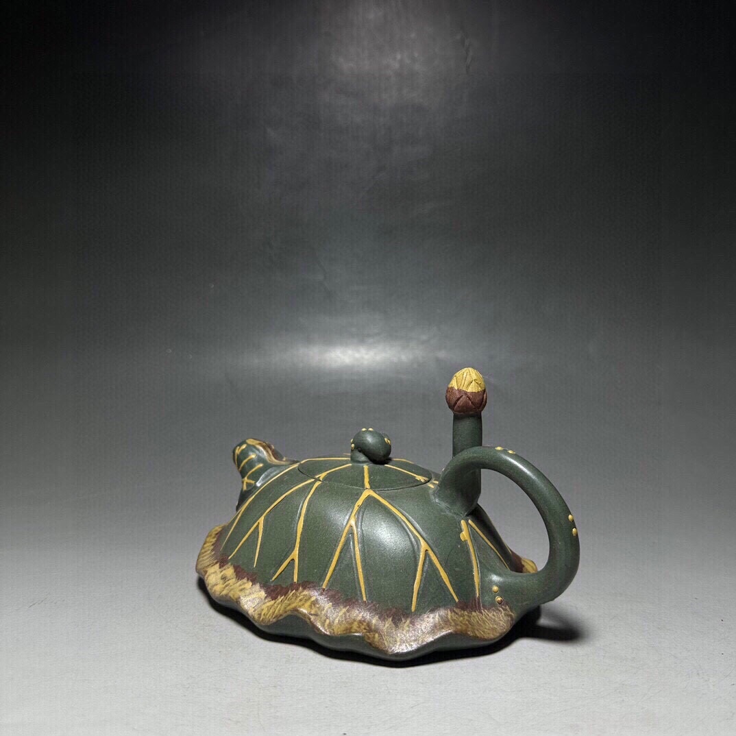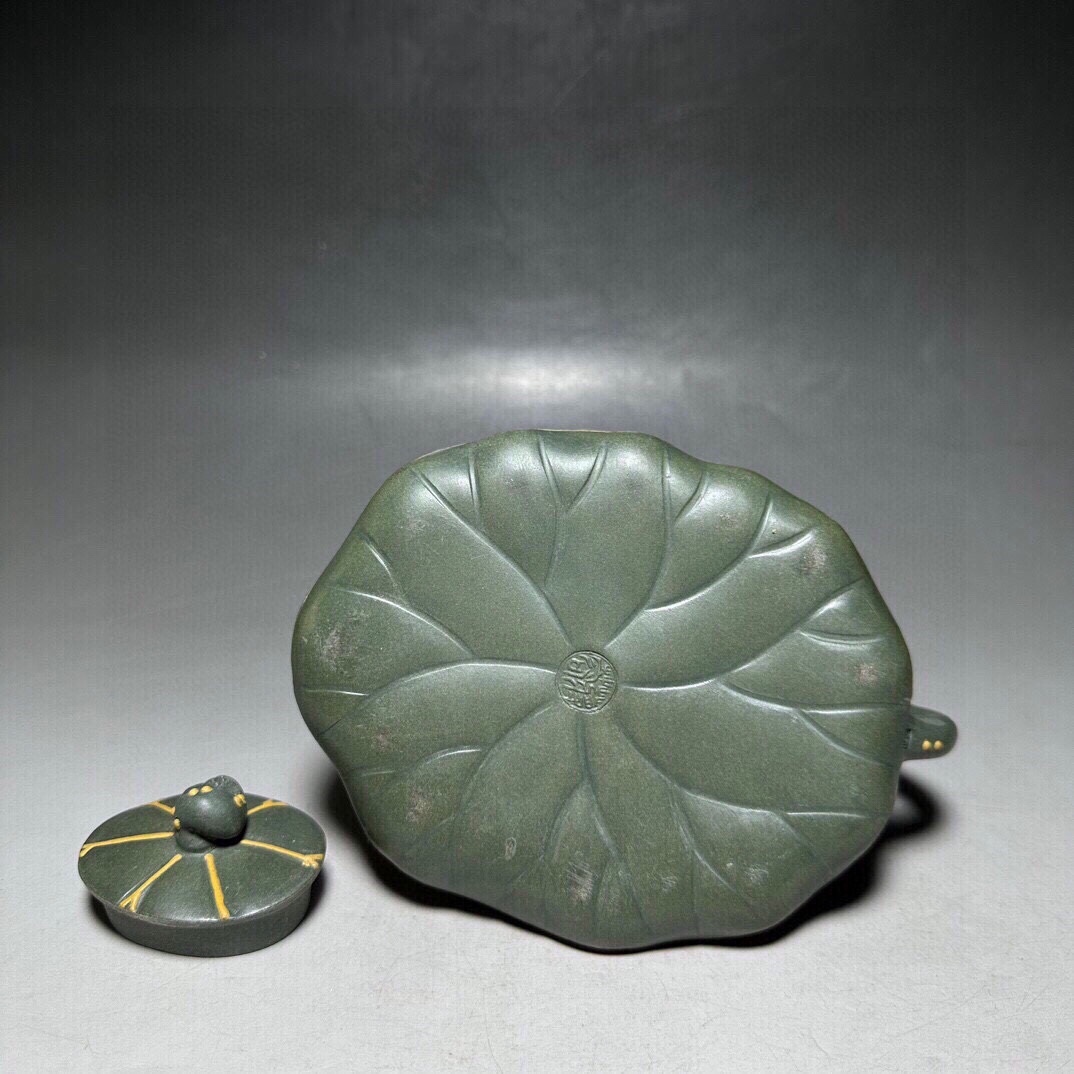 【超珍館蔵】紫砂壺 荷葉壺 チャン蓉款 綠砂 茶具 茶道品 置物 賞物 古賞物 古董品 古美術品 時代物 旧家蔵出 稀少珍蔵品