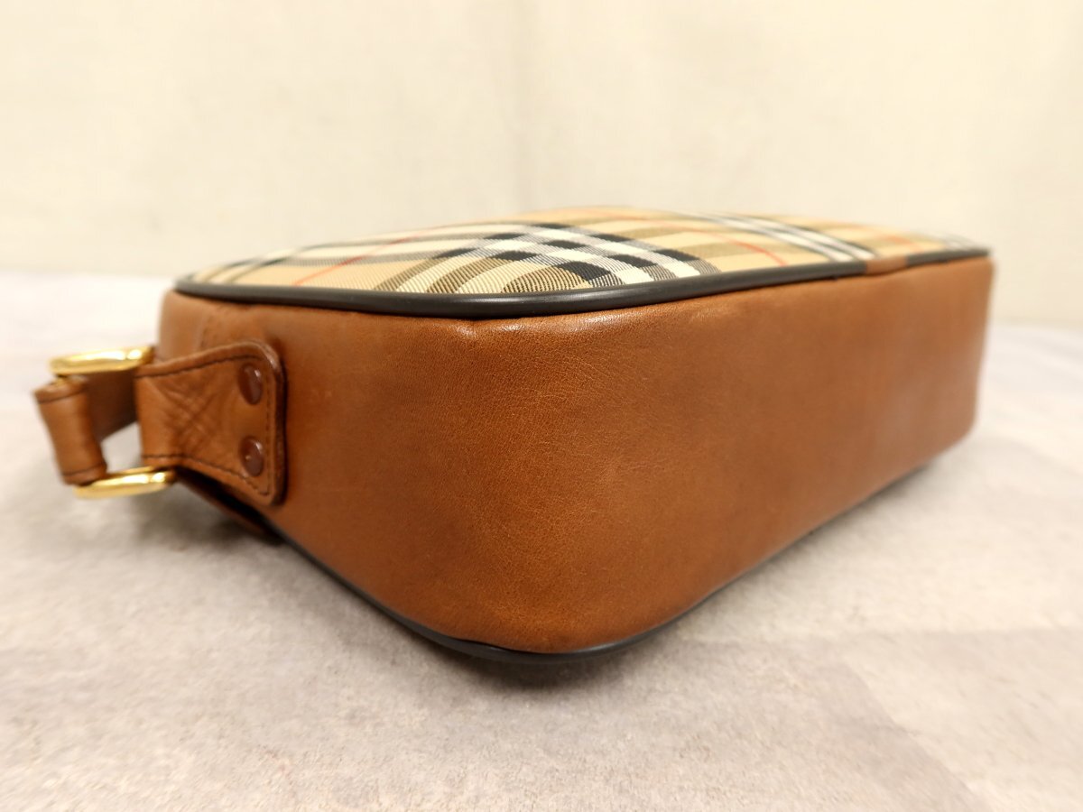 ●超美品●BURBERRY バーバリー●ノバチェック●ナイロン カーフ レザー 本革●ショルダー バッグ●ブラウン系●ゴールド金具●Js61237