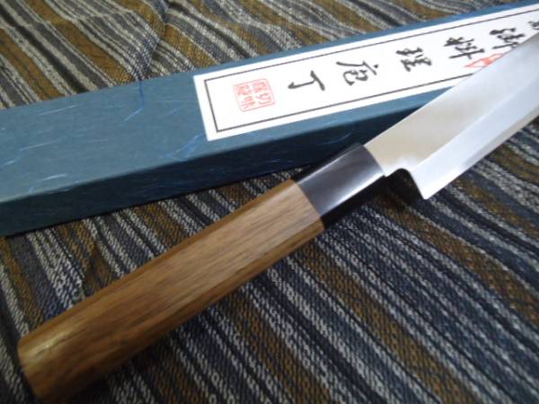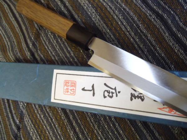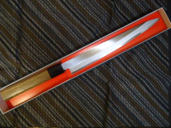 | ご面倒でも必ず入札後のキャンセルは出来ません。 必ず細部までお読みく ださい! 不明な点は質問欄からお願いします。 等お読みの上、ご入札下さい。 入札・落札後のお申し出は承れません。 右利き用片刃 本格刺身包丁 安来白鋼 ウォールナット材八角柄付き【クルミ】(特別仕様) サイズ 全長420 mm 刃渡270 mm 刃幅 34 mm 刃厚 3 mm 重量190 g | |