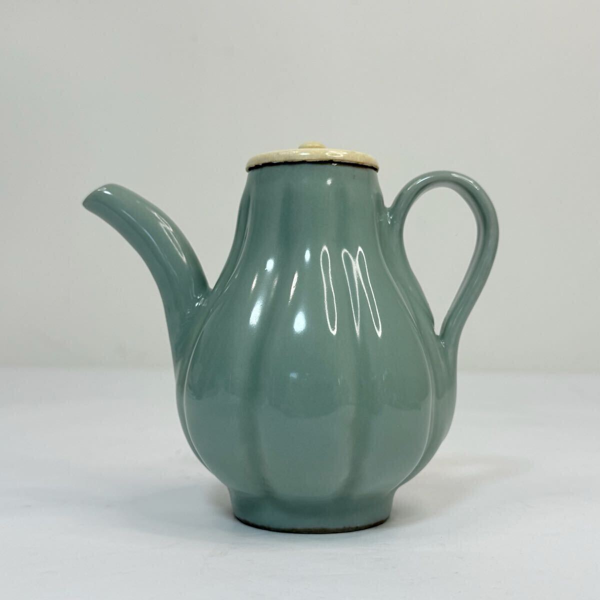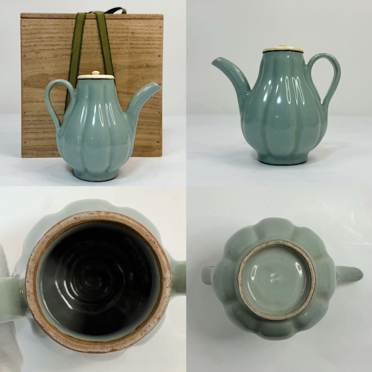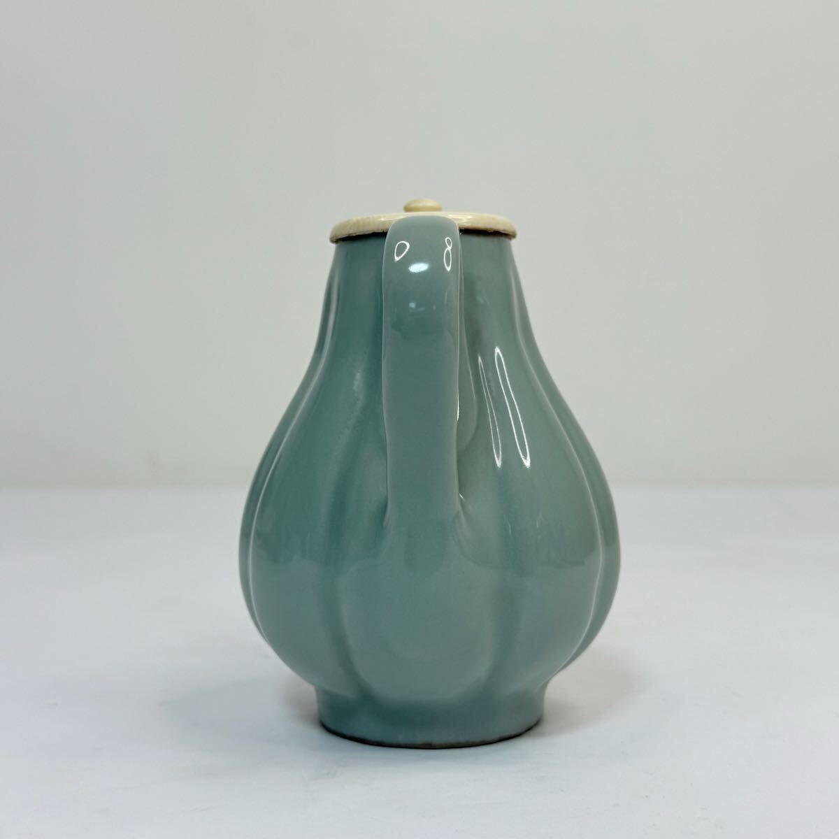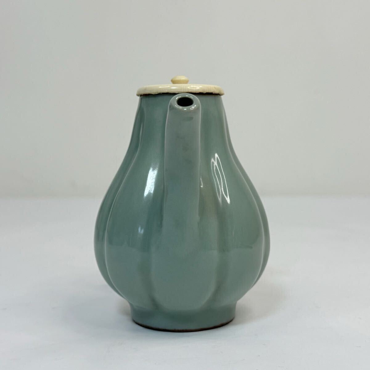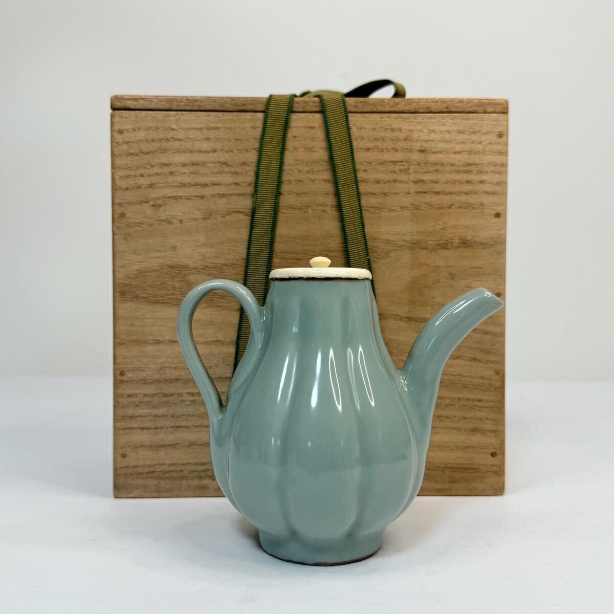 CBT-中国古美術 時代物 青磁 水注 龍泉窯 茶道具 共箱付 蓋付 唐物 陶磁器 中国古玩 骨董品 幅13cm 高さ11.7cm |