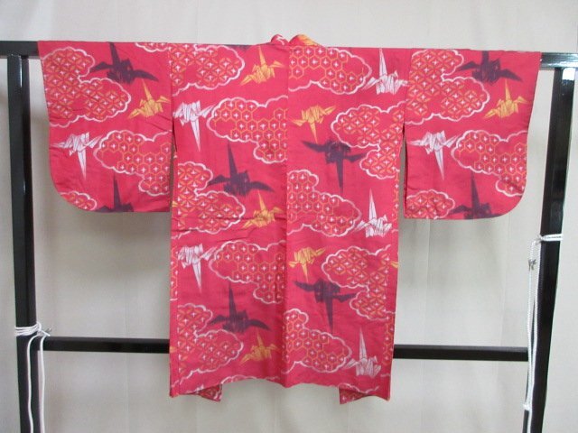 商品名 | 1円 中古 羽織 正絹 和装コート 縮緬 折鶴 雲 亀甲 袷 おしゃれ 身丈87cm 裄63cm【夢職】★ |