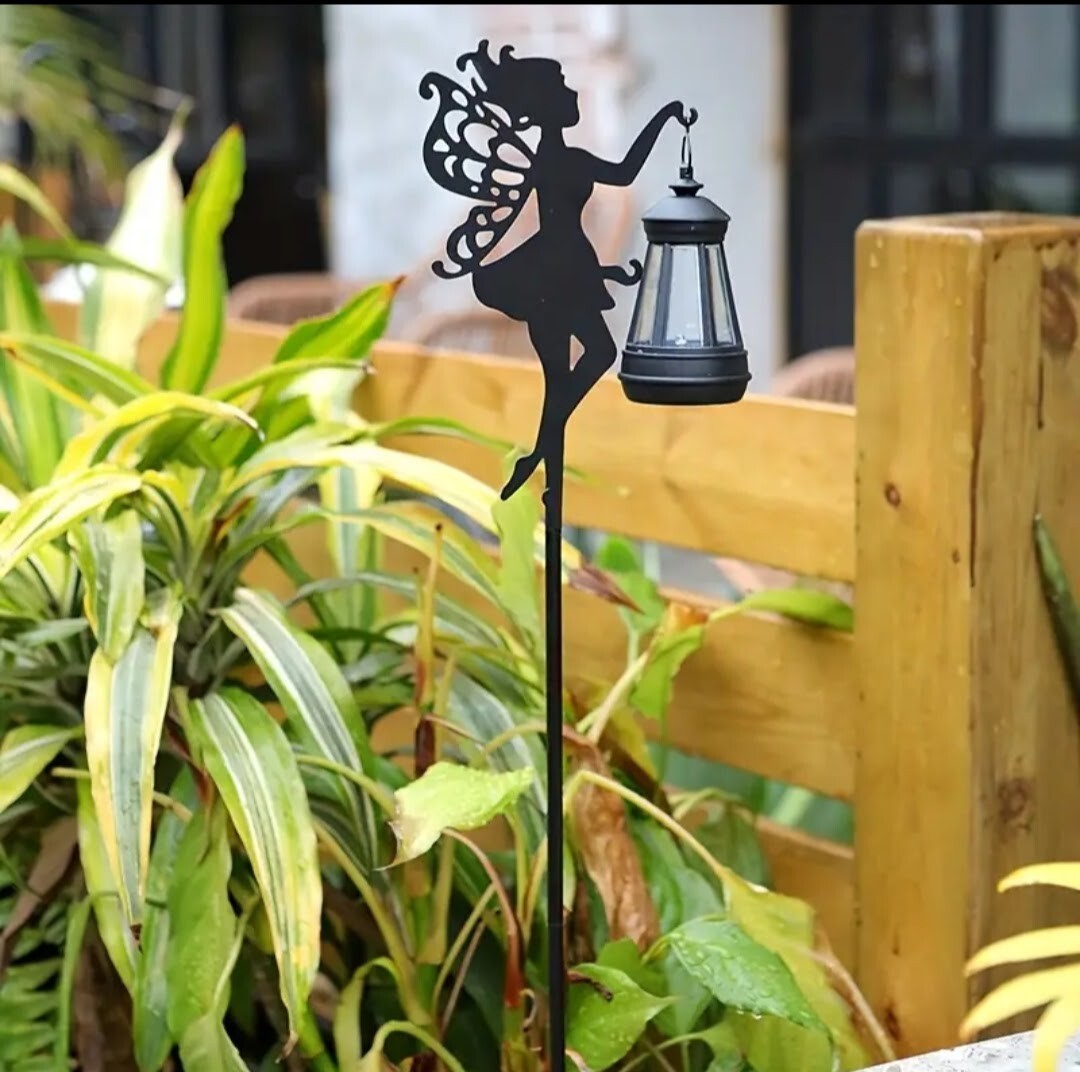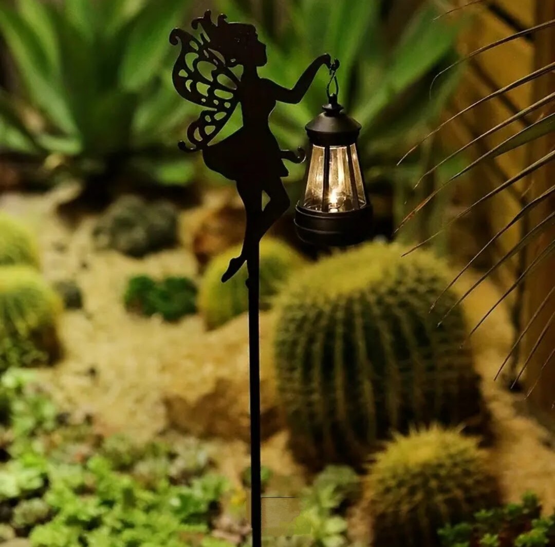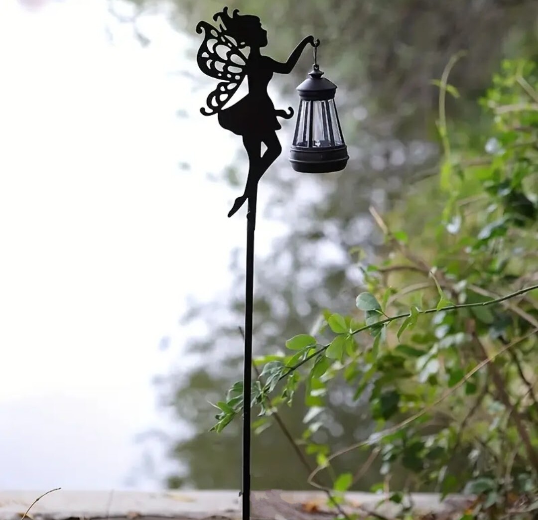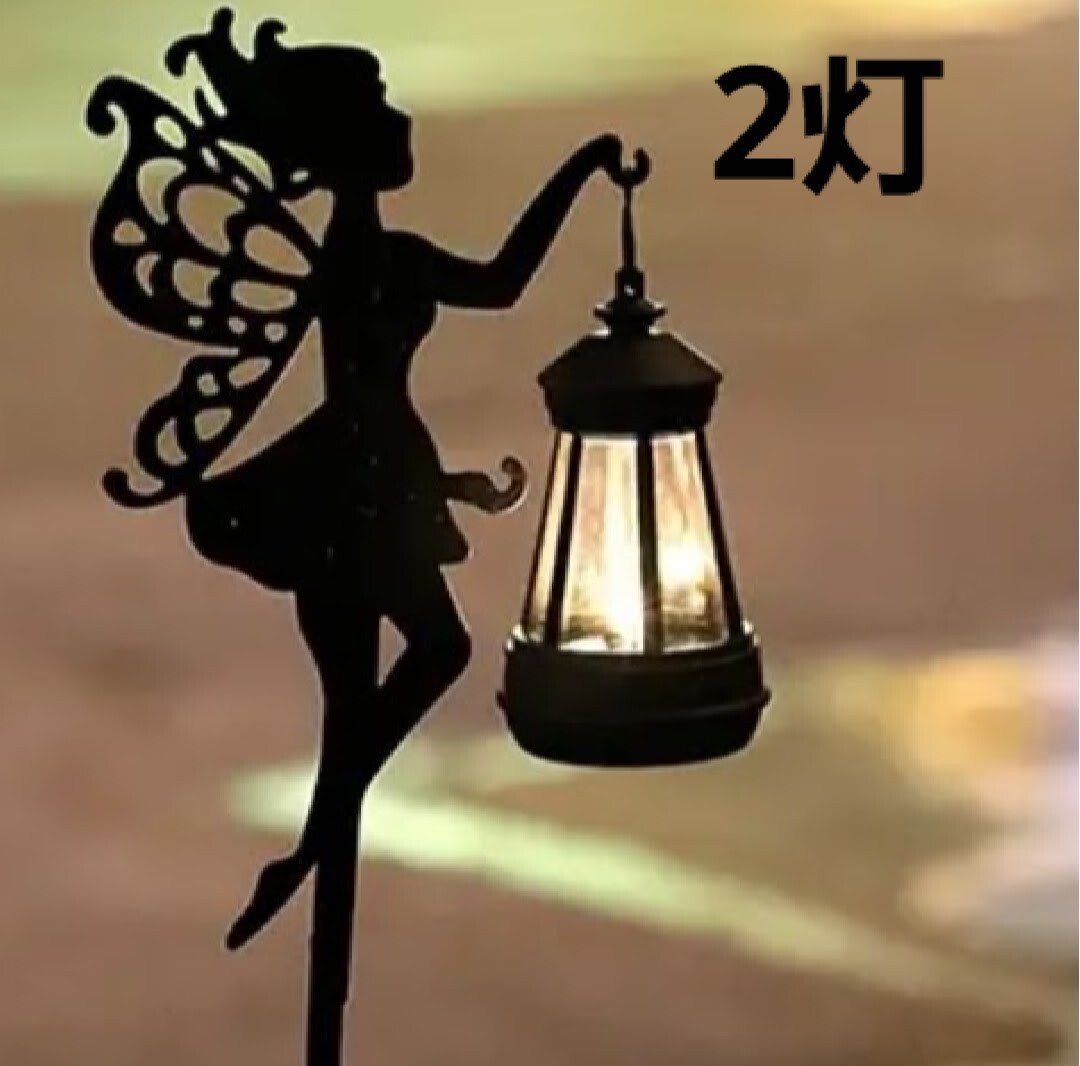 かわいい妖精さんモチーフのアイアン製スタンド付きソーラーライト