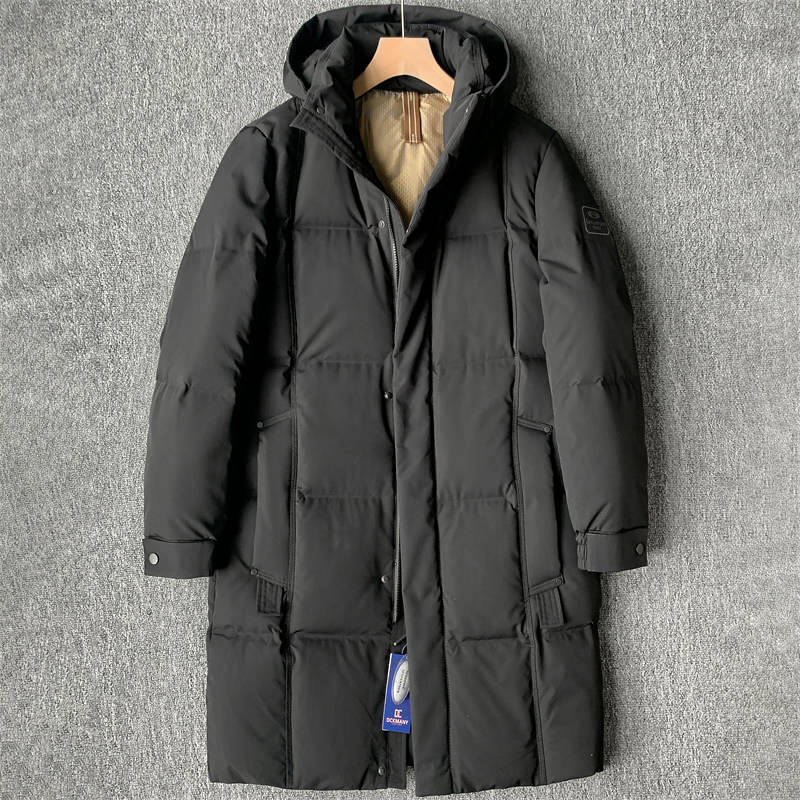 5548-2XL黒色 ダウンコート メンズ ダウン90% ダウンジャケット フード取り外し可 新品DCKMANY 防寒 厚手 冬服 ミドル丈 膝上丈 アウター