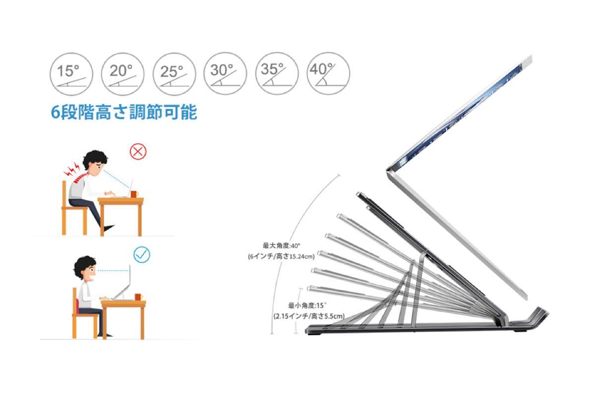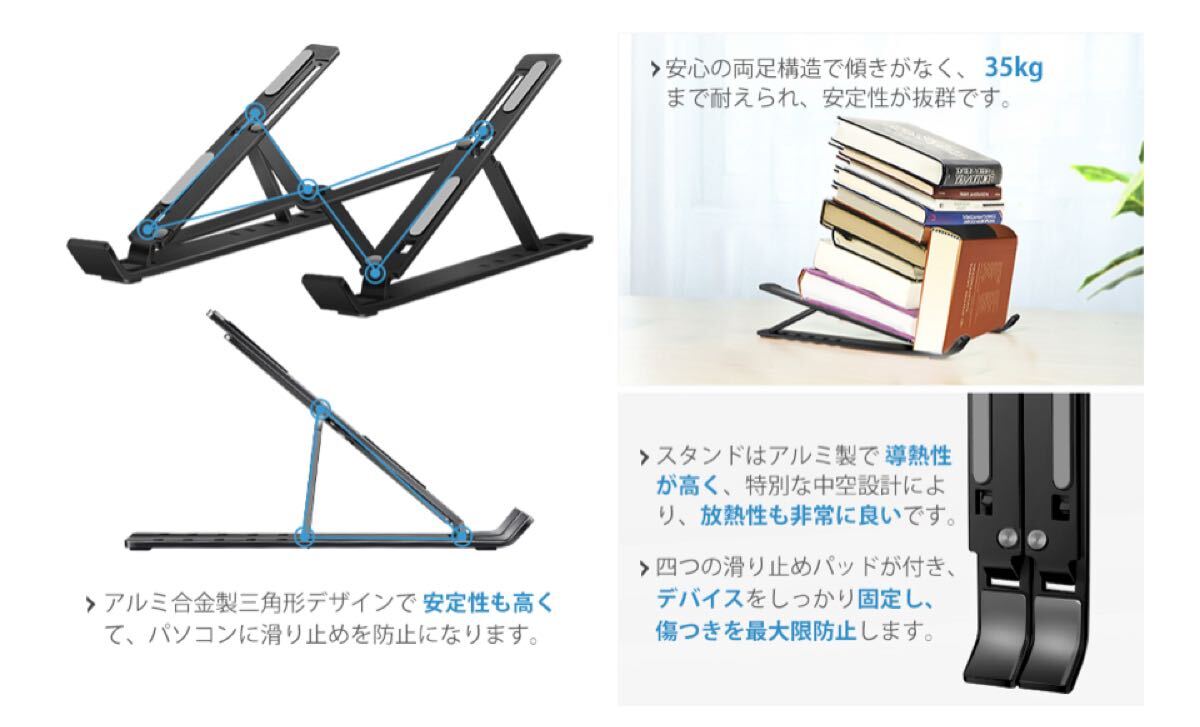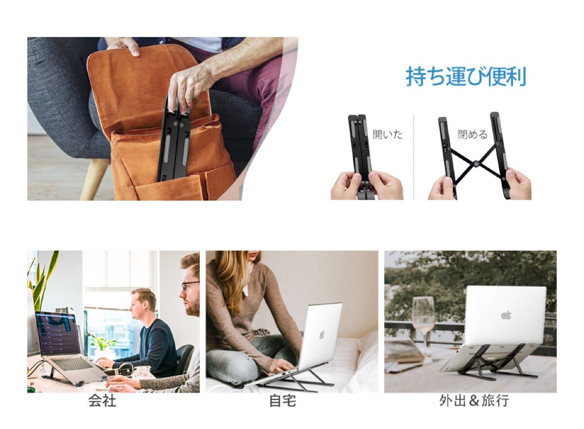 折りたたみ式の高さ調整可能なアルミ製PCスタンド。