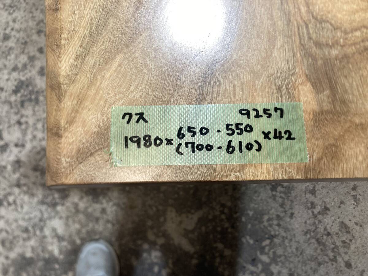 クス9257 楠 一枚板無垢材 1980x650-550x42mm ダイニングテーブル  ローテーブル センターテーブル 天板 樟 くすのき