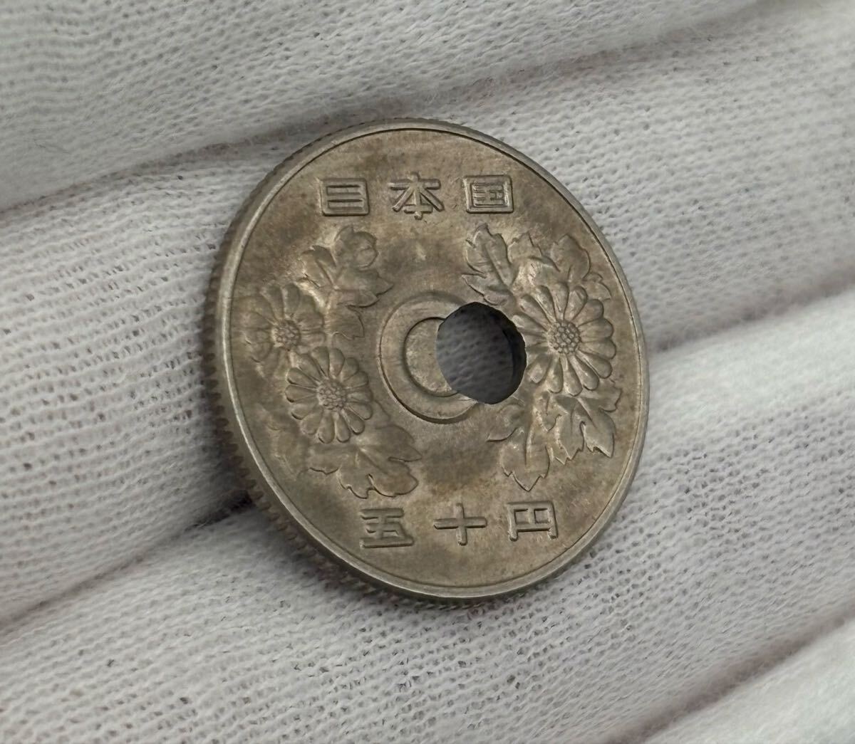 希少 エラーコイン 50円白銅貨 昭和51年 穴ずれ 穴ズレ エラー銭 現行銭 五十円玉 ニッケル 硬貨 50円玉 現行コイン