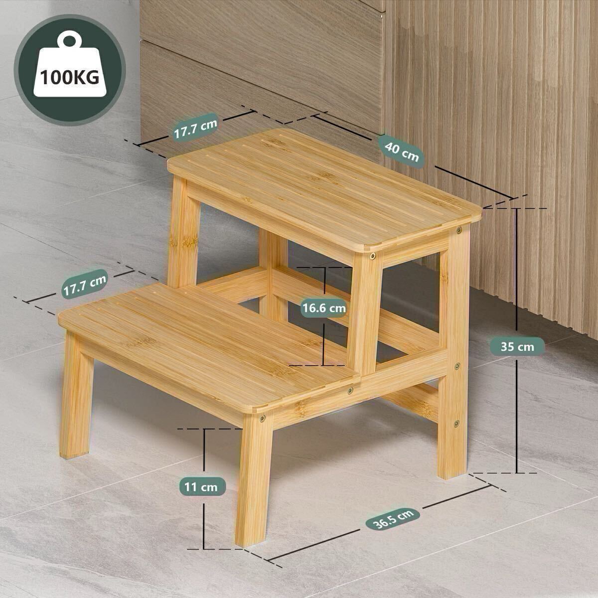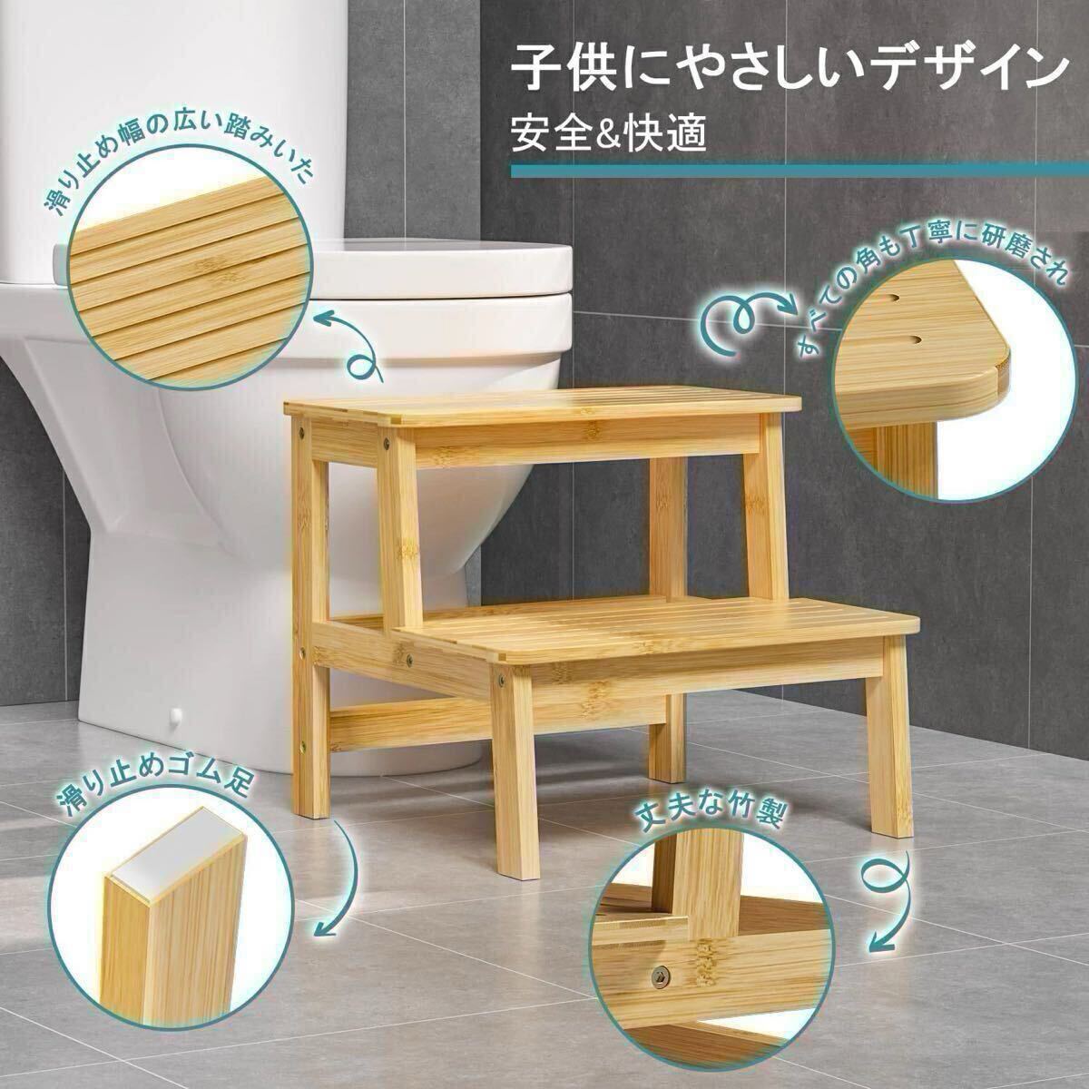 ●【頑丈な構造トイレ踏み台】この2段の脚立は高品質な竹を採用しており、丈夫で壊れにくく長持ちします。台形の脚の設計により、安定感が高く、子供から大人まで使えます。頑丈な木材で作られたベッドステップスツールは腐食や錆に耐性があります。すべての角も丁寧に研磨されており、不慮の転倒や怪我からお客様をしっかり保護します。