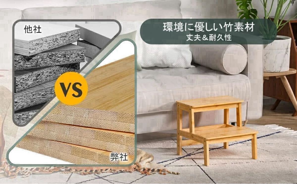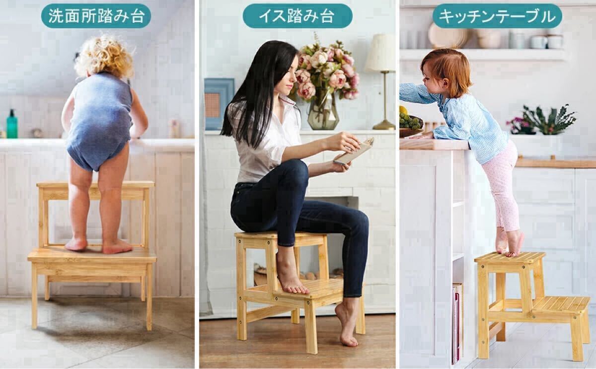 ●【滑り止めステップスツール】4つの滑り止めゴム足が床を完全に保護します。すべての角も丁寧に研磨されており、不慮の転倒や怪我からお客様をしっかり保護します。商品は、モニターによって色合いが異なって見える場合があります。竹の材料ですべて手作りなので、製品は完璧ではないかもしれませんが、気になるお客様は慎重に購入してください。