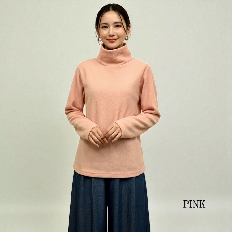 軽くて暖か◎両面起毛フリース ハイネックプルオーバー LL・ピンク 51537