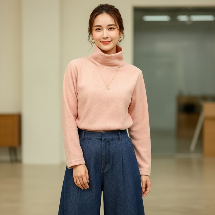 8cmのハイネックで冷たい外気の侵入を防ぎ、首元を優しく包み込みます
