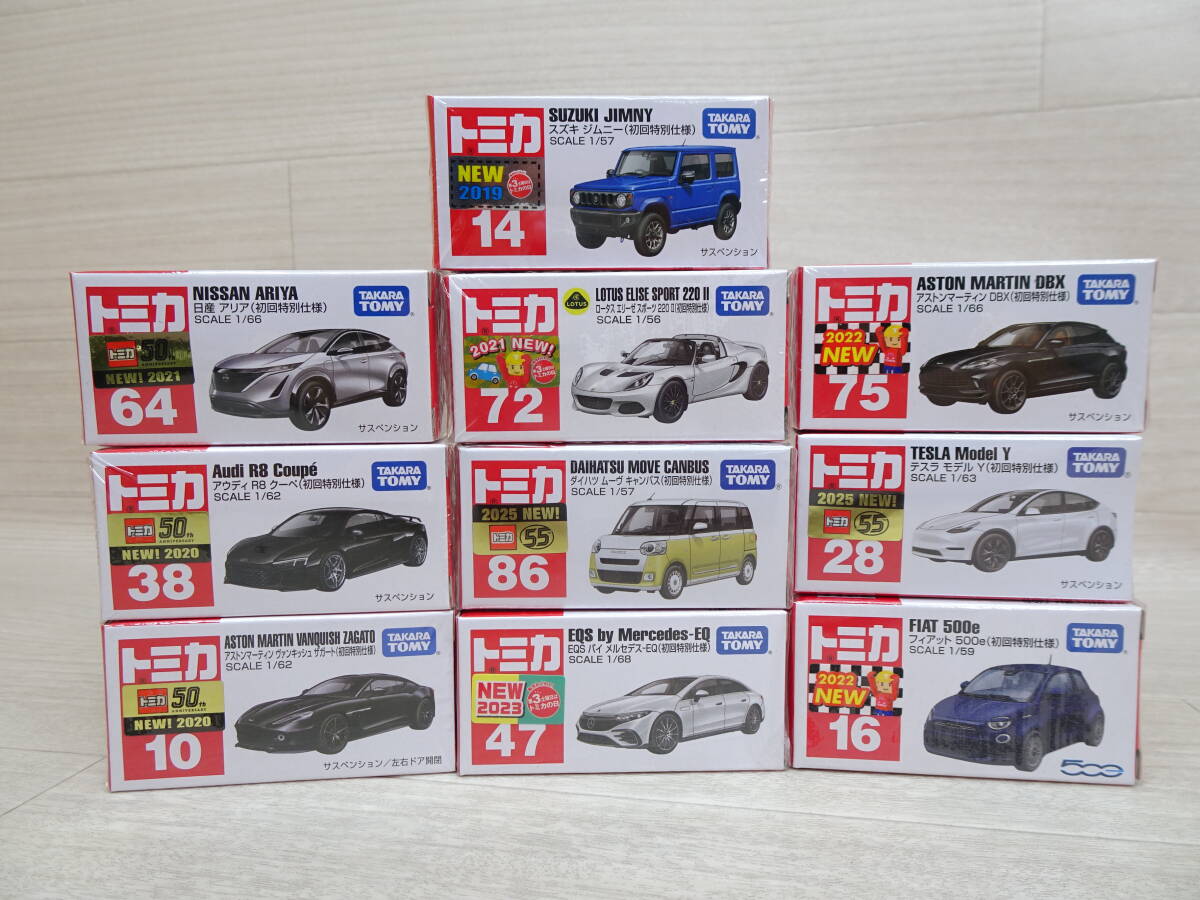 13/Ω138★トミカ初回特別仕様 10台セット★アリア・アウディ・アストンマーティン・メルセデス・ムーヴ・ロータス・ジムニー・テスラ他