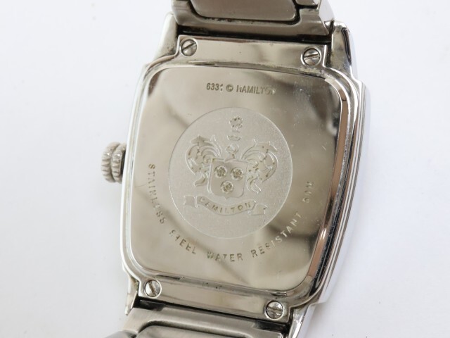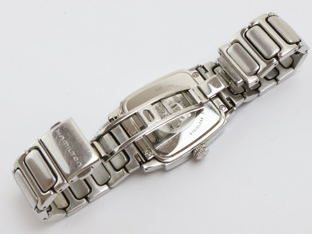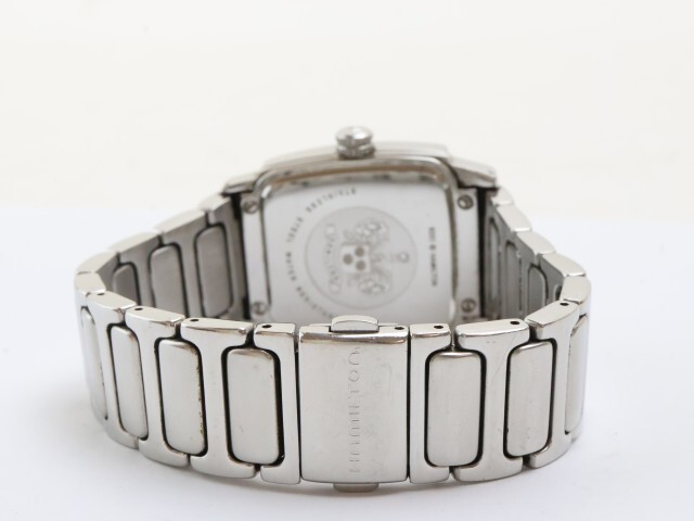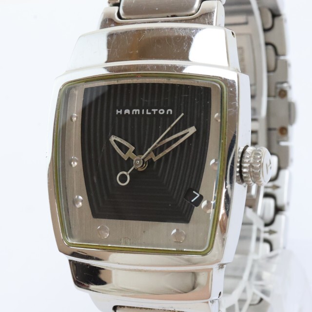 商品説明 | 当商品をご覧いただきありがとうございます。 ハミルトンのクオーツ式腕時計になります。 日付機能が付いているお品になります。 純正のベルトになります。 電池交換済ですので末永くお使いいただけます。 サイズ | ケース径 よこ(リューズ含まず) 上部約30mm、下部約28mm | 厚み 約9mm ベルトの内周 長さ・最大 約cm 状態 | 動作品になります。 | 使用に伴う小傷があり、ベルトに使用感があります。 針に変色があります。(画像あり) 文字盤、背面に汚れがあり、風防、ケース、裏蓋にスレがあります。(画像あり) 状態は画像を参考にお願いします。 付属品 | 本体 | |