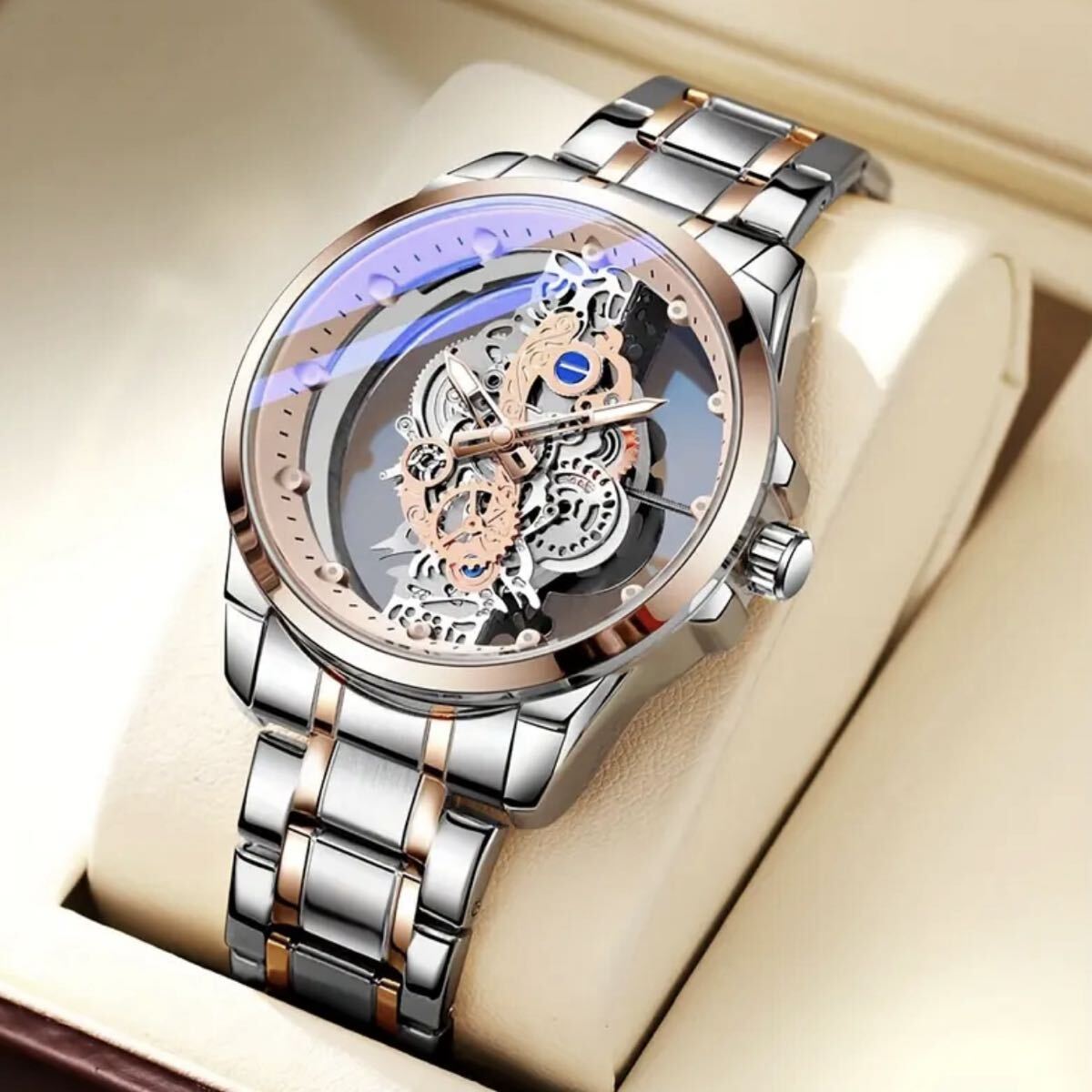 -露出ムーブメントの芸術的な美しさと暗所視認性を両立したラグジュアリーウォッチ|父の日や記念日に贈る【特別感あるローズゴールド仕上げ】で男性の風格を引き立てる