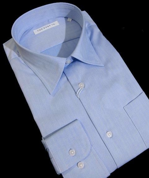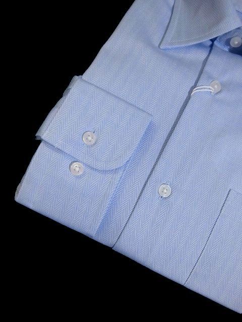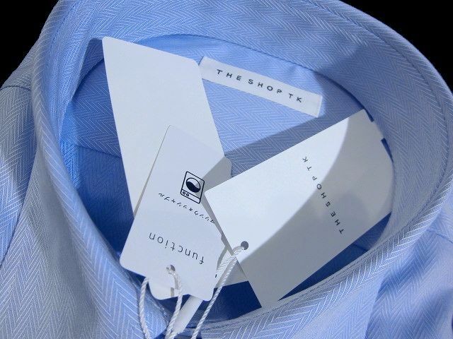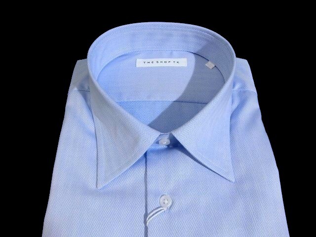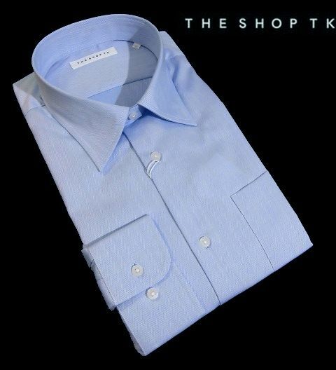 J水10379新品▼ タケオキクチ THE SHOP TK ドレスシャツ ワイシャツ M サックスブルー系 へリンボン 長袖シャツ フォーマル シャツ