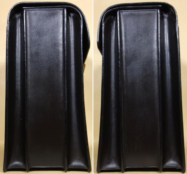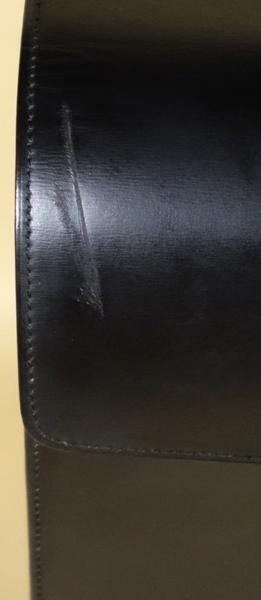 出品は画像の物のみです。カギは紛失してありません。使用品ですのでしわ、擦れや汚れは有ります。多少なりとも型くずれもあります。白っぽい汚れ汚れのような箇所もあります。蓋の部分に5cmくらいのライン状の傷が有ります。バックの内側も擦れや汚れ有りますが特にひどい物はないです。外観同様に白っぽい汚れのような箇所はあります。気になる方はご自分でメンテナンスなどをしてご対処ください。サイドの糊の部分にヒビ、傷や多少の剥がれのような箇所がありますが、きちんと縫製はされているので特には問題ないです。使用していればこの糊の部分はこのようになってしまいます。底面はそれほどひどい傷もなく蓋の折れ曲がる部分などはまだまだ固めの状態なのでそれほど頻繁には使っていなかったように思えます。バックのサイズはW43xH34xD17.5cmくらいです。高さは持ち手は含みません。