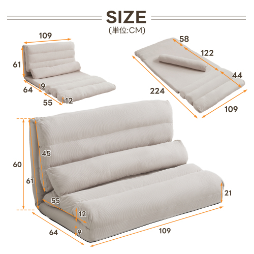 • ソファベッドは最長224cmまで伸ばすことができ、1~2人で十分に使用できます。多様なスタイルに変化し、日常のニーズを満たします。***照明環境やディスプレイ設定により、画像と実物の色味に差が生じる場合があります。