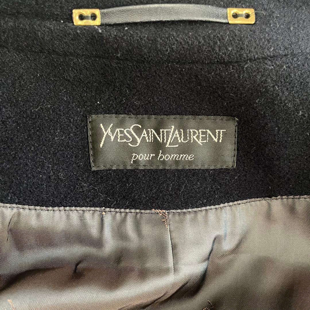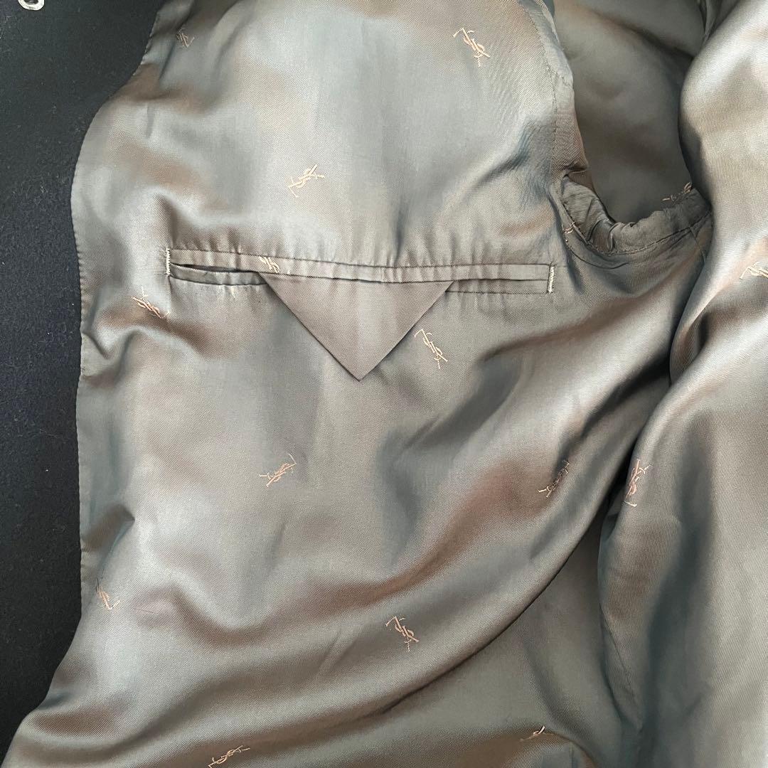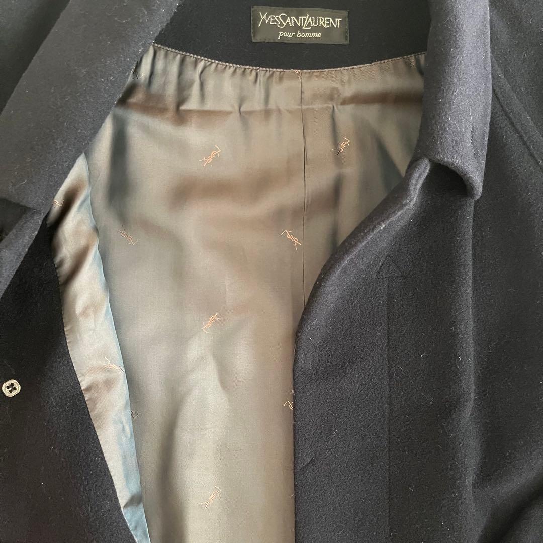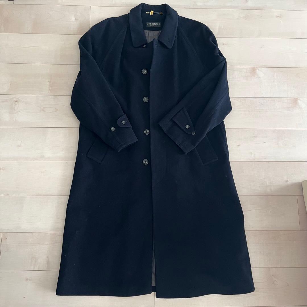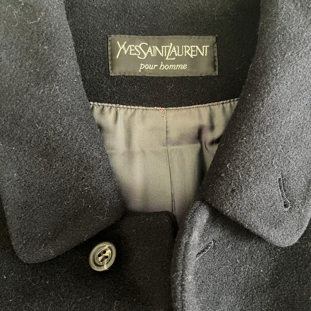ネイビーのウール混合素材のYves Saint Laurent製チェスターコート。