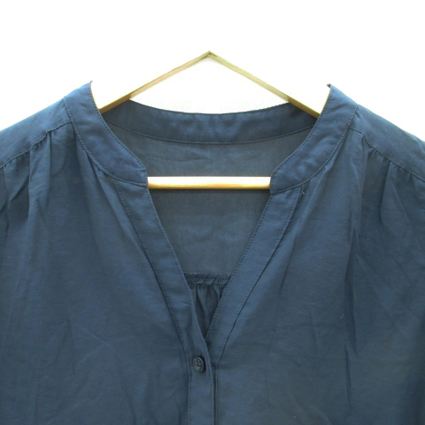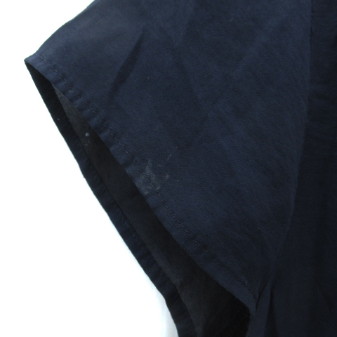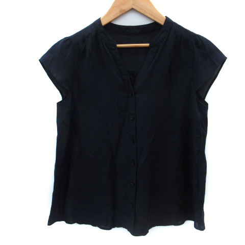 ナチュラルビューティーベーシック NATURAL BEAUTY BASIC シャツ ブラウス ノースリーブ スリットネック S 紺 ネイビー レディース