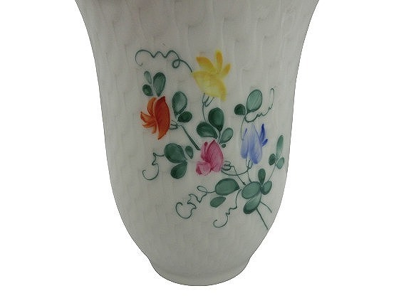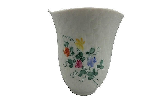 マイセンの代表作、「波の戯れ」の上にスイートピーが描かれたタンブラー。