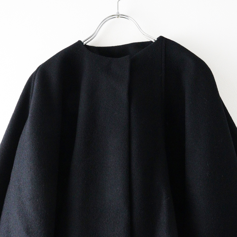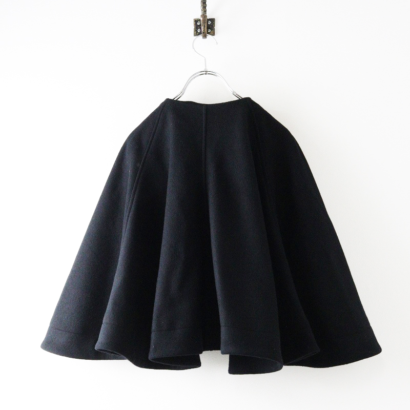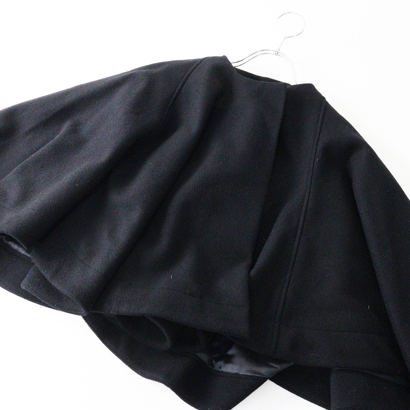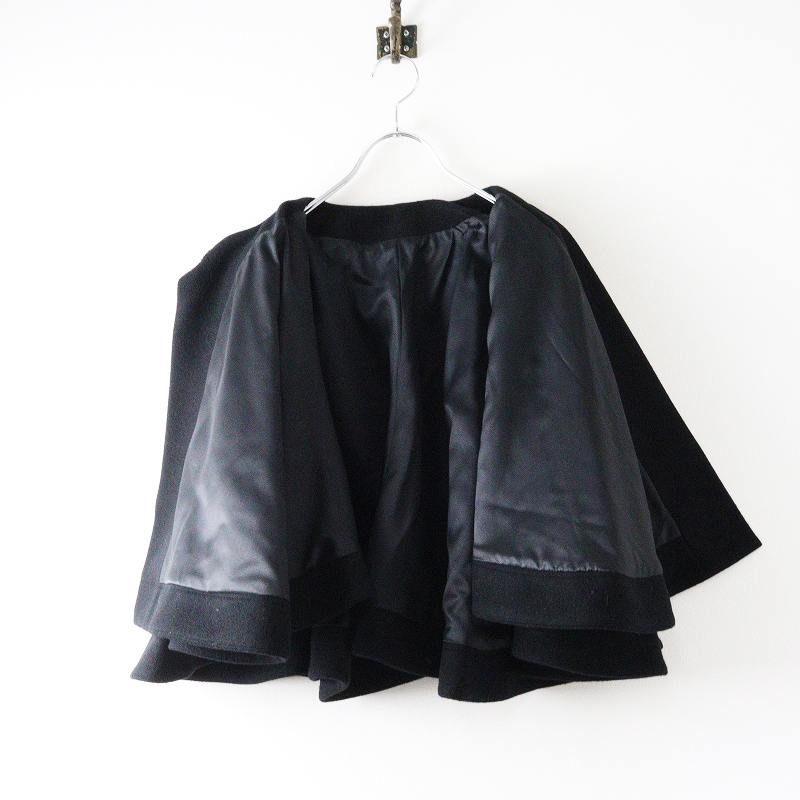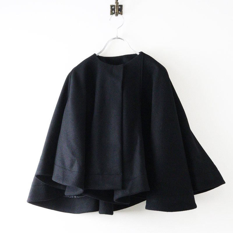 美品 2024AW シーニュ cygne フレアショートケープ Romain F\ブラック ウール ポンチョ コート アウター【2400014640458】