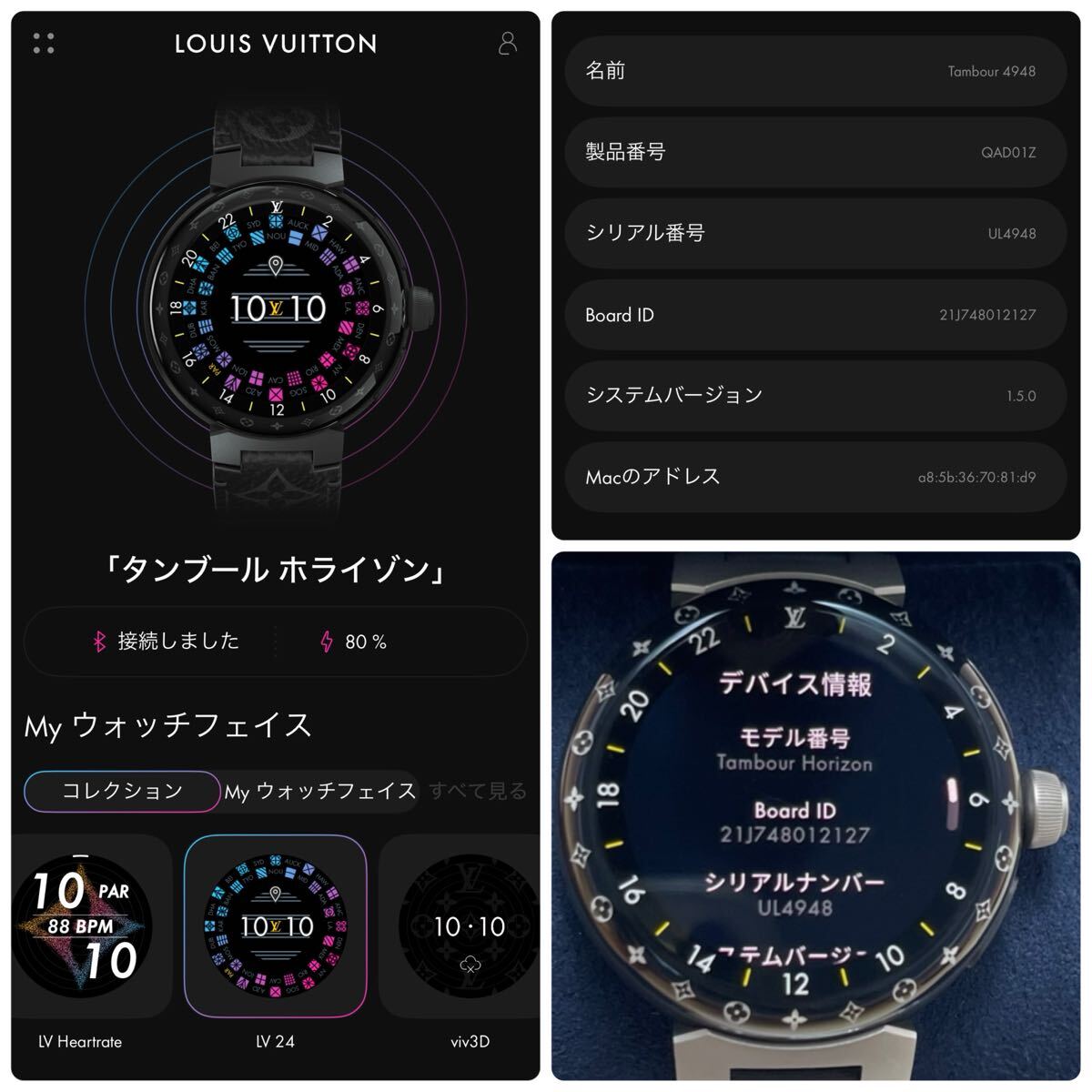 【現行/極美品】LOUIS VUITTON ルイヴィトン タンブール ホライゾン ライトアップ V3 マットブラック スマートウォッチ レディース 腕時計 | |||