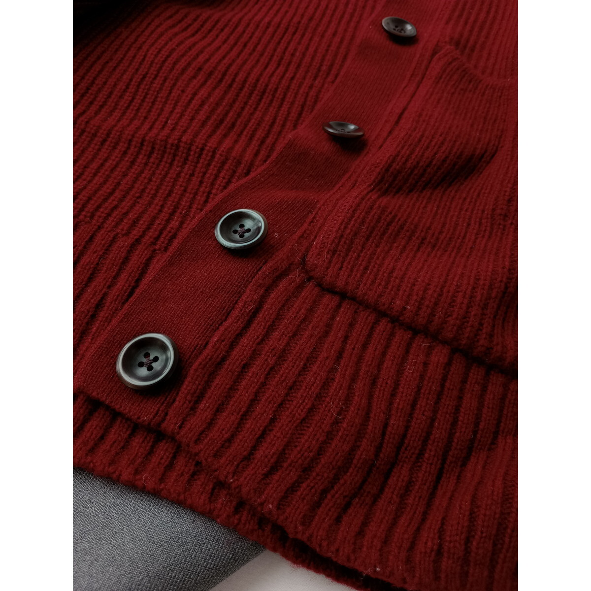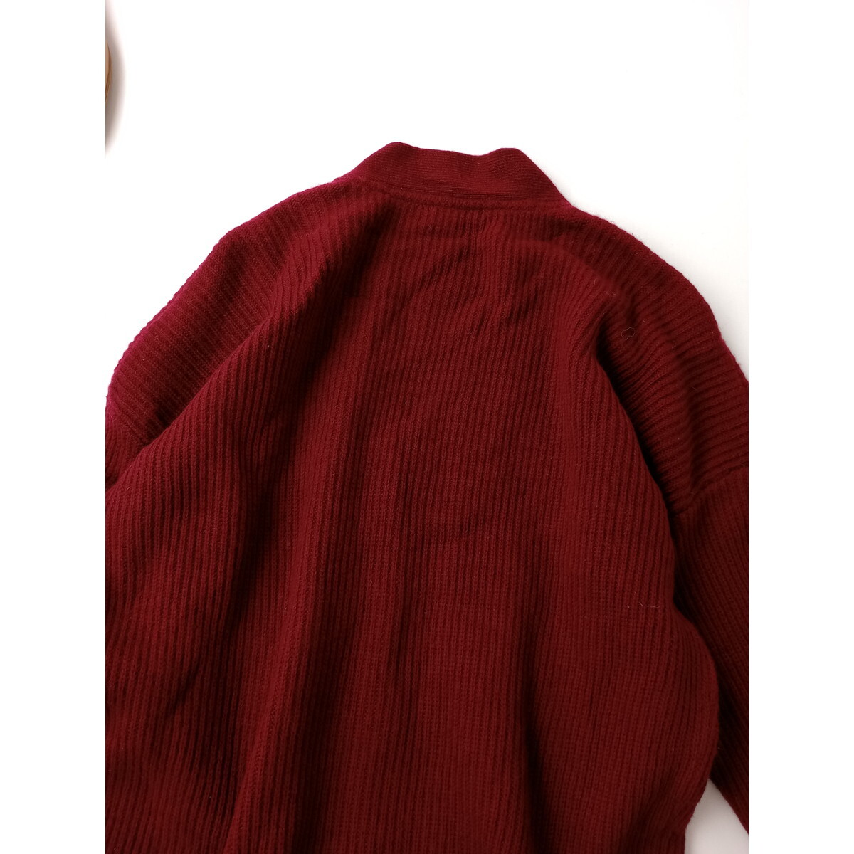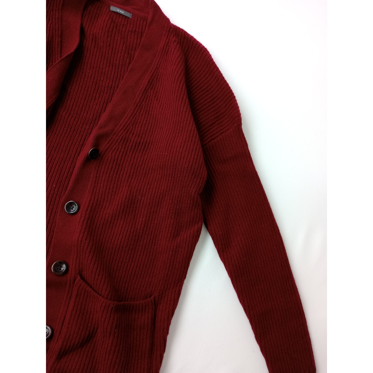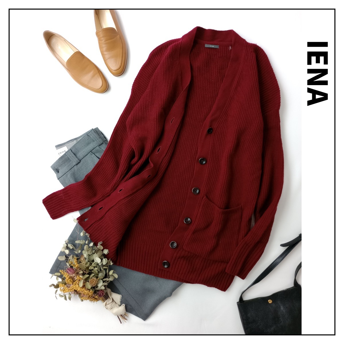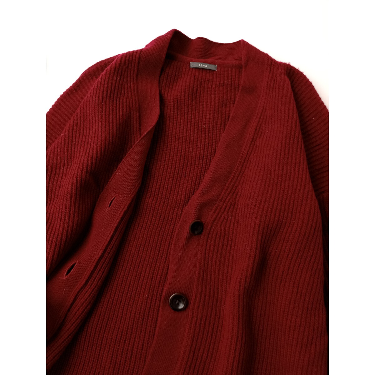IENA「レディーな気分にさせてくれる♪」ウール 毛 混 Vネック ロング ルーズニット カーディガン ポケット 長袖 ボルドー(26M+5571)