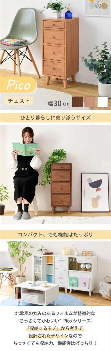 | 商品名 | リビングチェスト スリム コンパクトチェスト おしゃれ 幅30 奥行32 高さ73.5 Pico 4段 木製 ローチェスト ブラウン M5-MGKJKP00150BR |