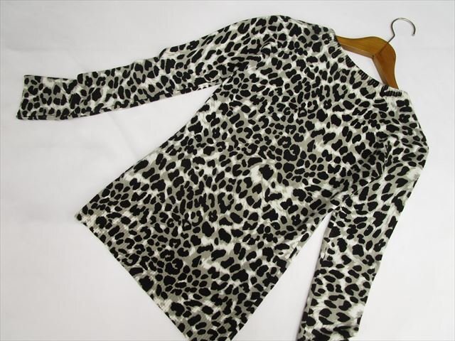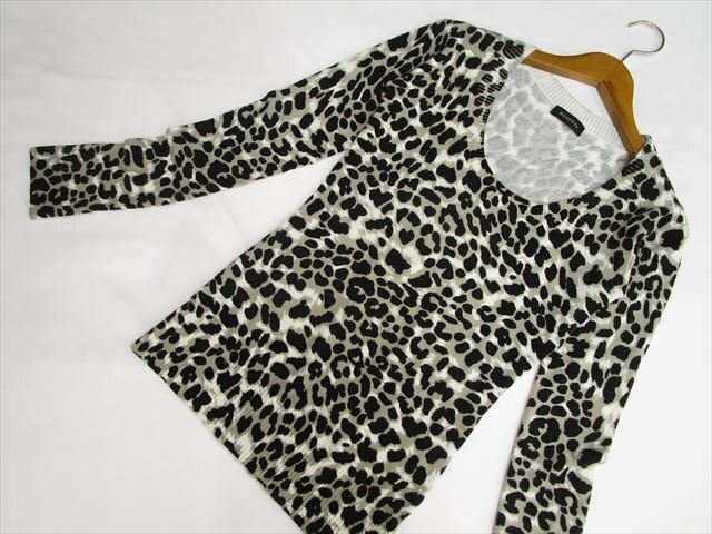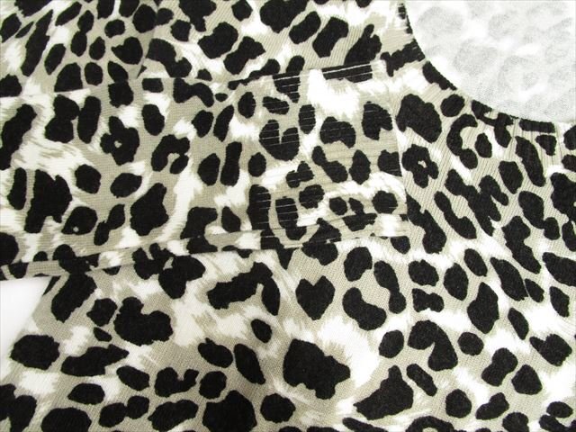 洗える 長袖 Uネック ニットカットソー オフホワイト×グレージュ×ブラック アニマル柄 【メール便可】