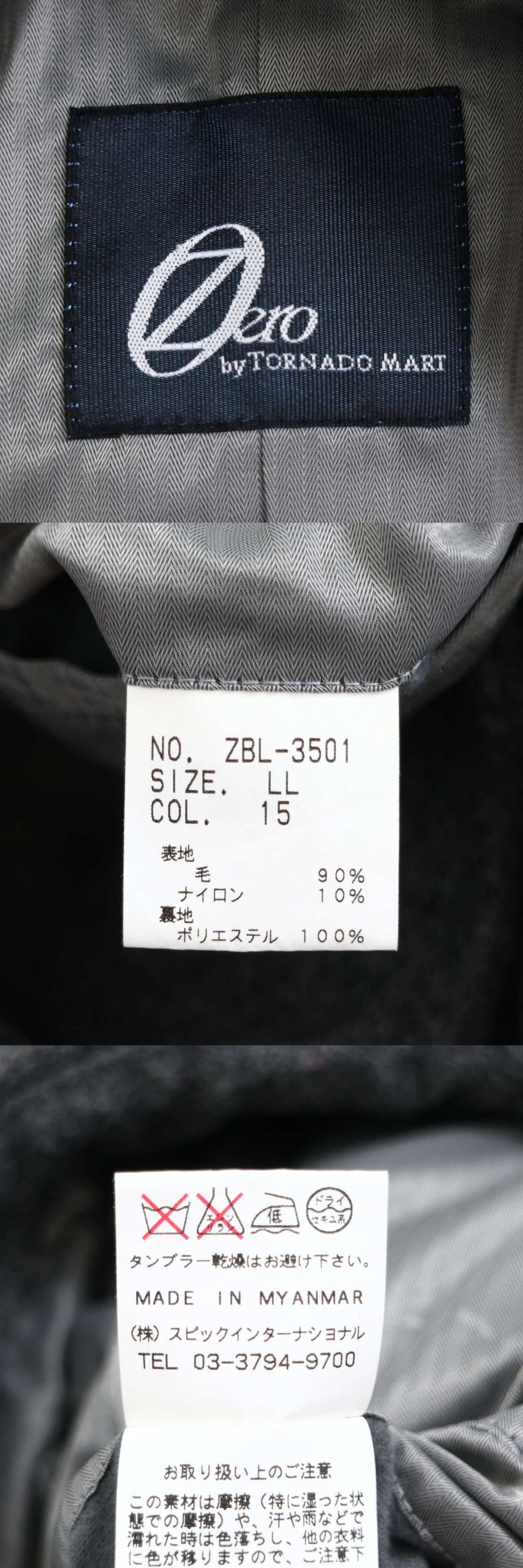 Zero by TORNADOMART トルネードマート 秋冬★ ウール スリム Pコート Sz.LL メンズ グレー