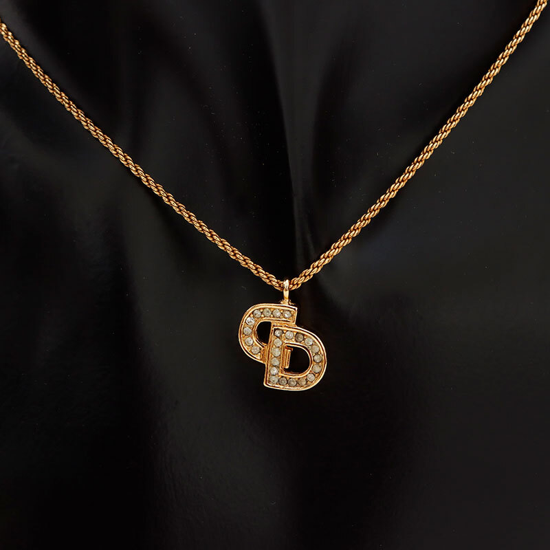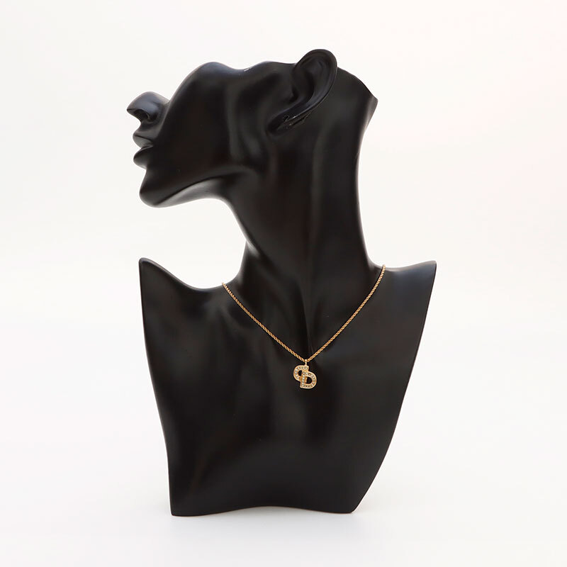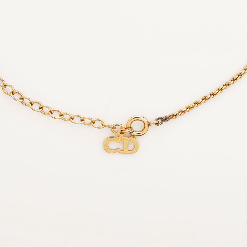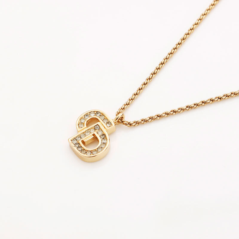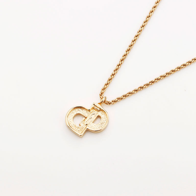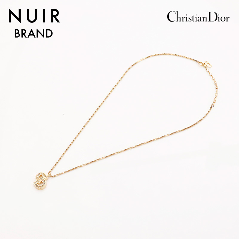 美品 クリスチャンディオール Christian Dior CD ロゴ ラインストーン ネックレス ゴールド WS10103