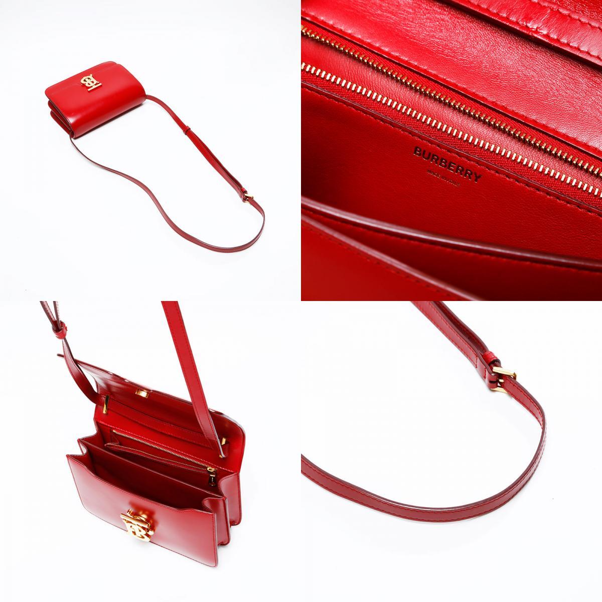 極美品 BURBERRY レザー TB ロゴ ショルダーバッグ レッド