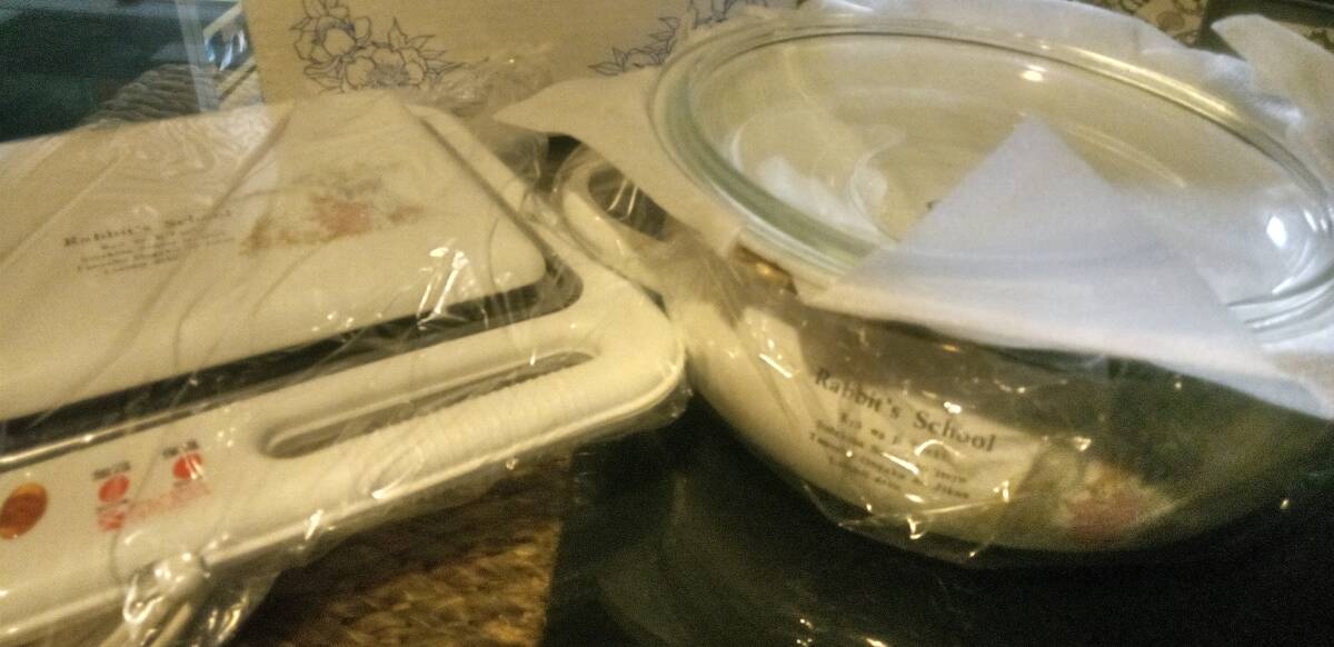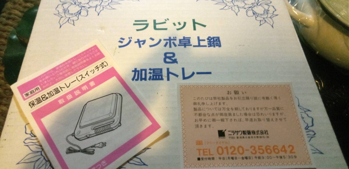 ラビット ジャンボ卓上鍋&加温トレー ホーロー25㎝ ニラサワ製販 昭和レトロ 未使用