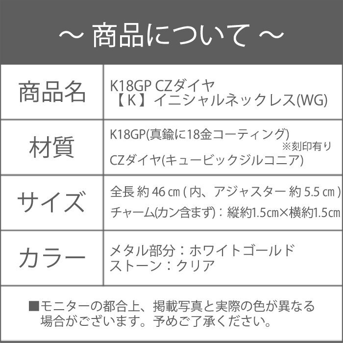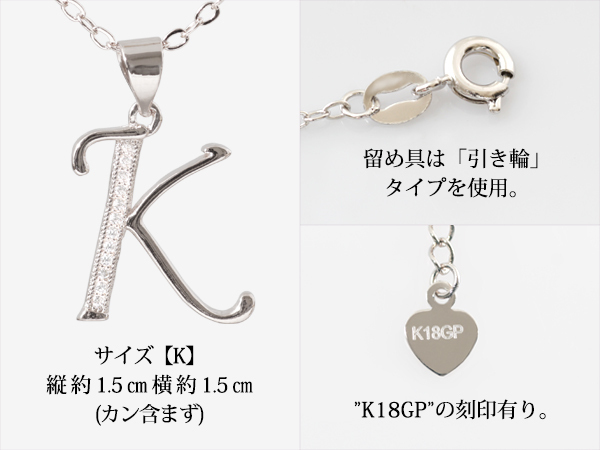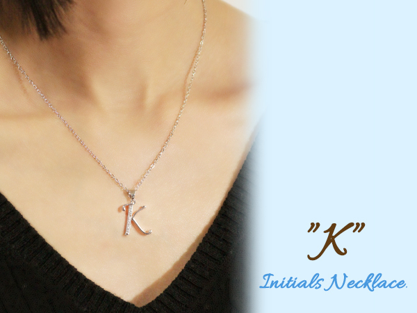 K イニシャル ネックレス レディース シルバー 18金 18kコーティング ホワイトゴールド 英語/ K18GP CZダイヤ 【 K 】イニシャルネックレス