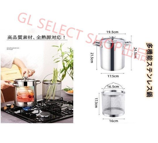 高品質 SUS304 パスタ鍋 揚げ鍋 ステンレス構造 シルバー ステンレス ステンレス パスタ鍋 パスタトング付き