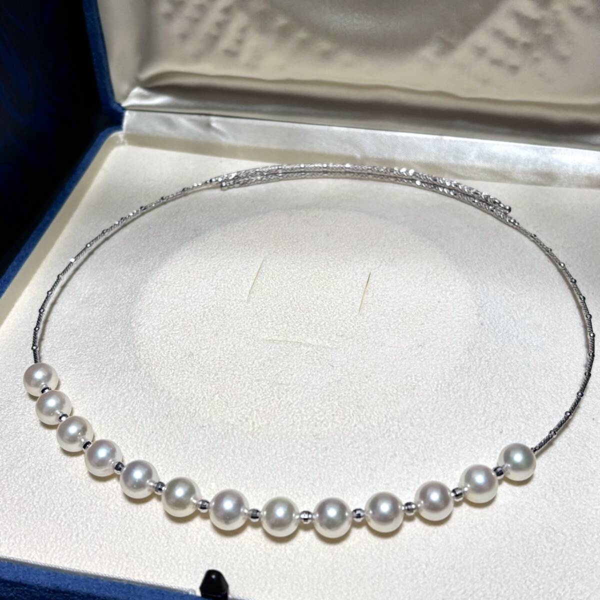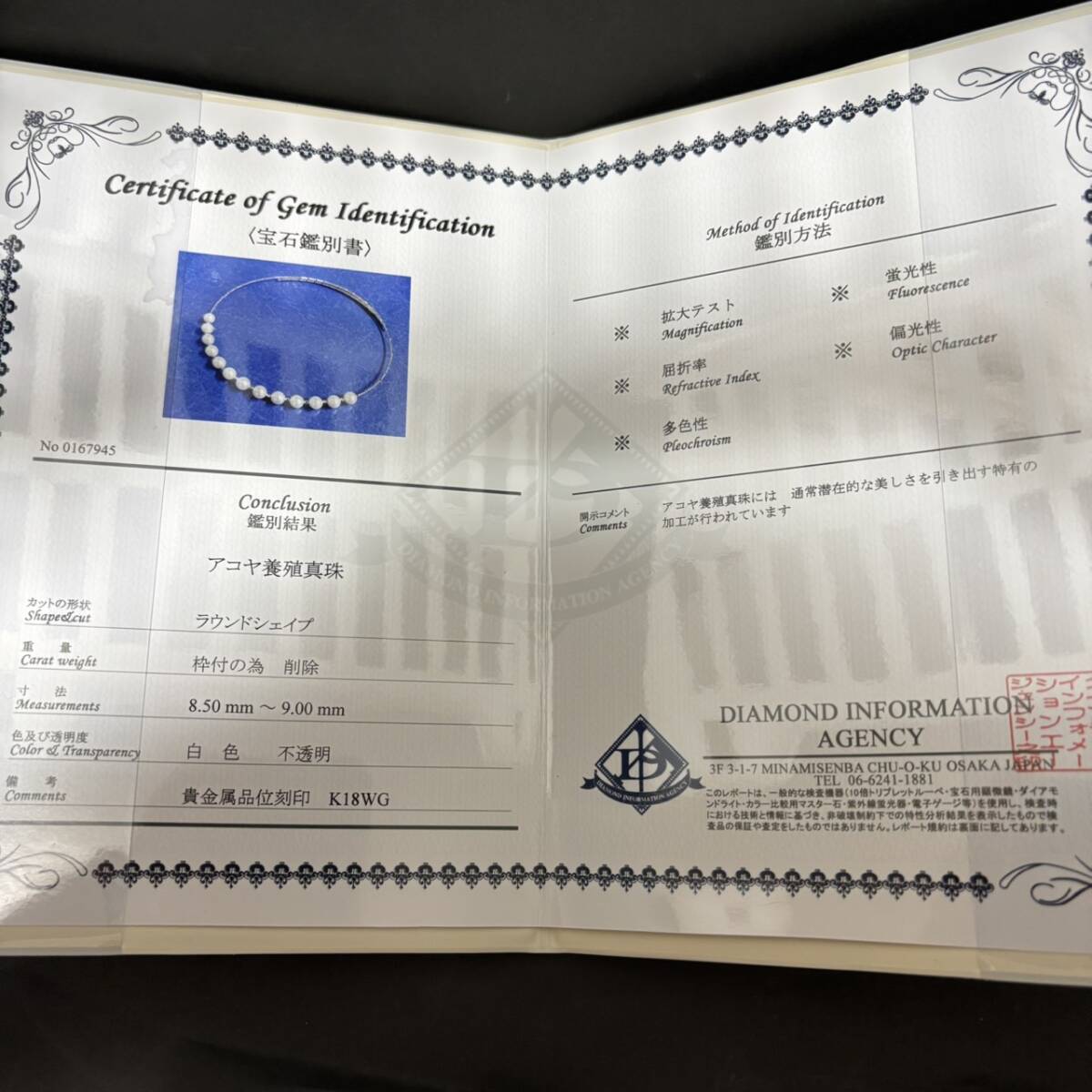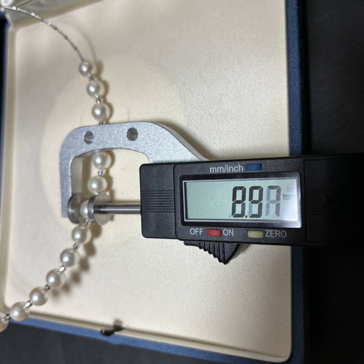 【K18WG/テリ強/鑑別書付属】あこや真珠 パール ネックレス 約8.5mm-9mm シルバー金具 pearl jewelry necklace 19g 55cm アコヤ 本真珠