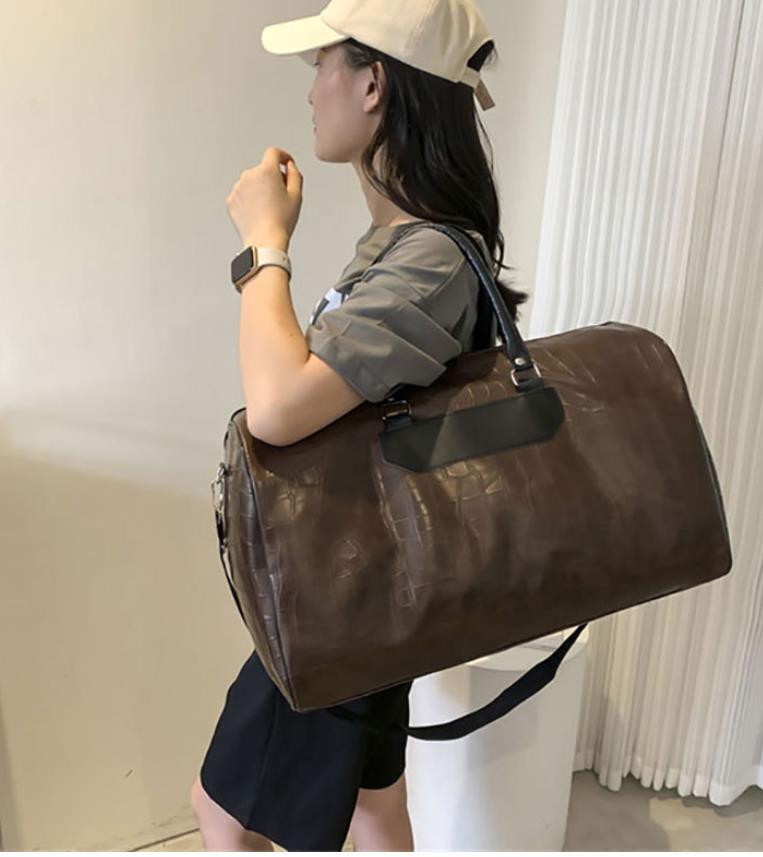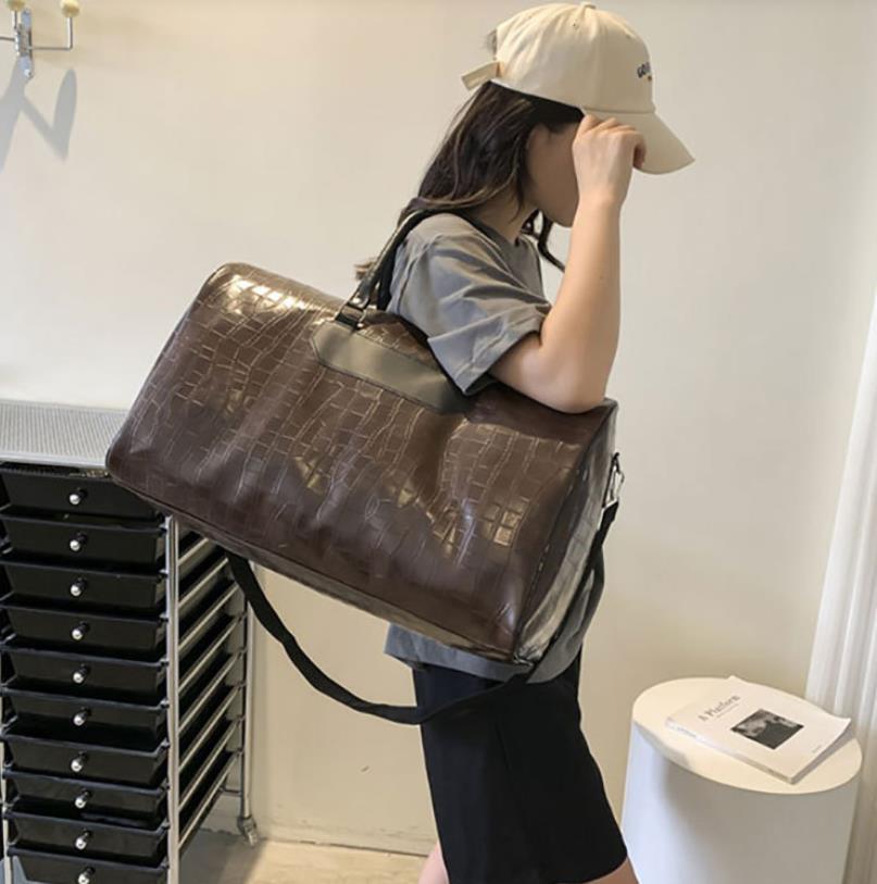 クロコダイル柄 メンズ  ボストンバッグ  ショルダーバック  トラベルバッグ ブラウン