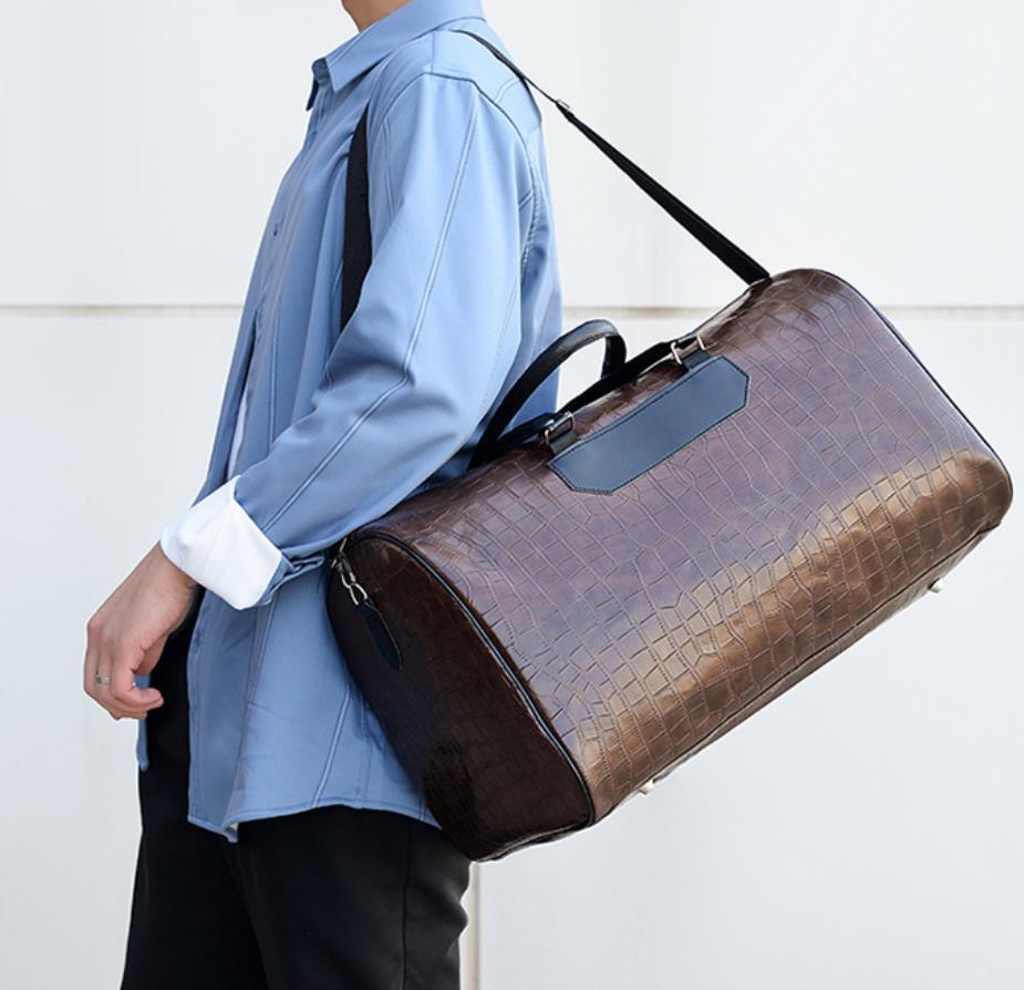 クロコダイル柄 メンズ  ボストンバッグ  ショルダーバック  トラベルバッグ ブラウン